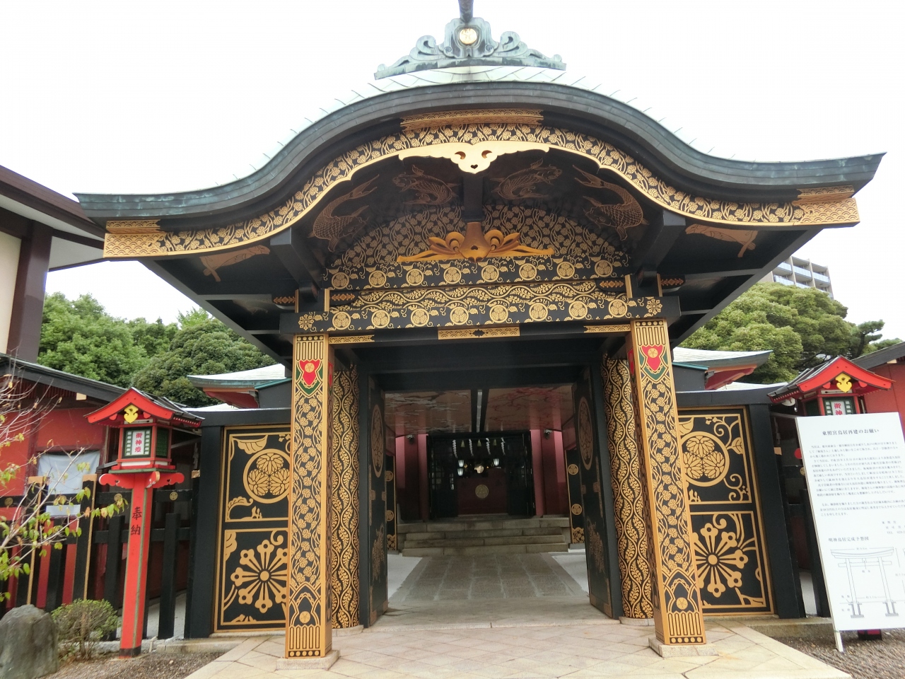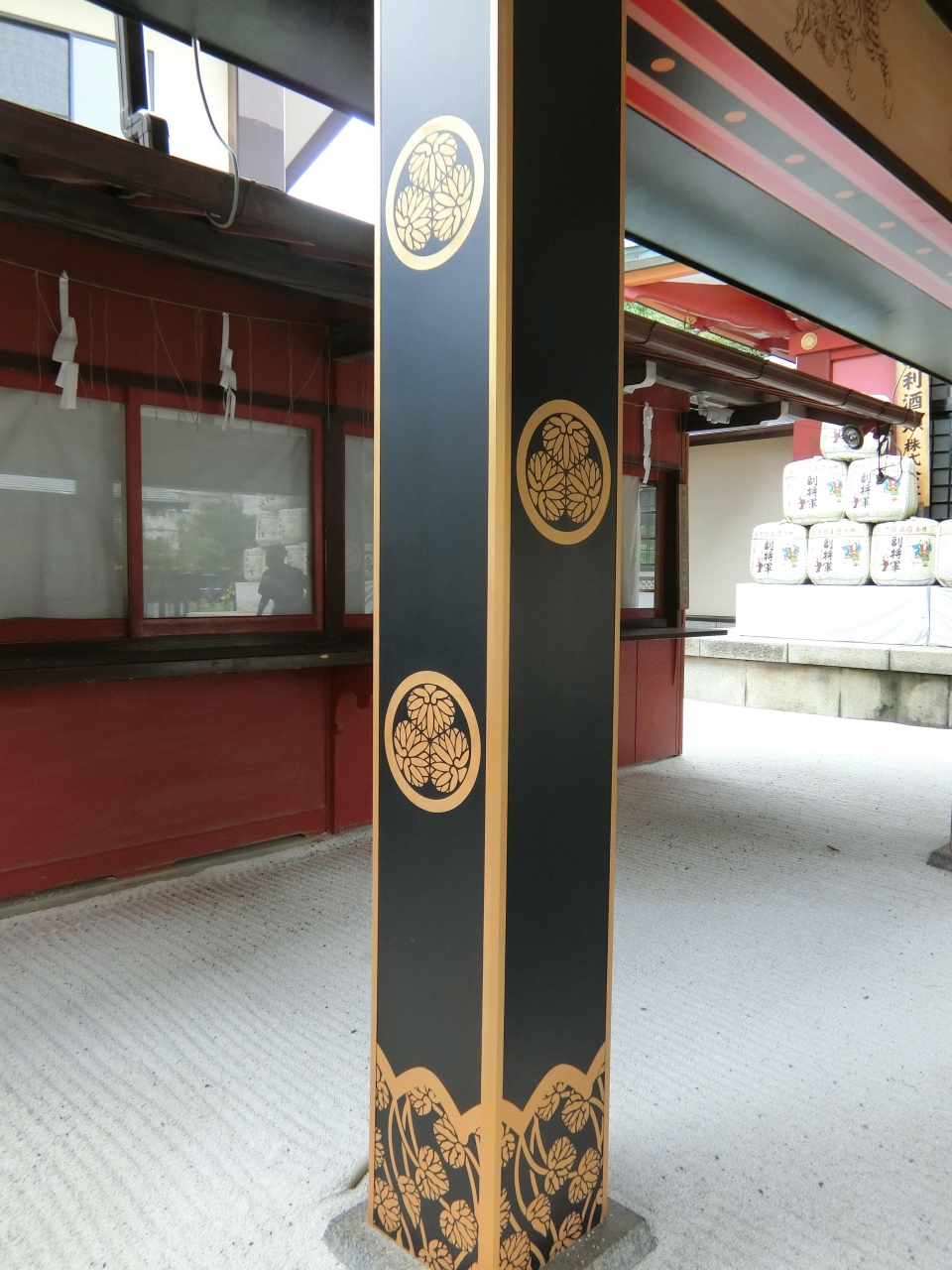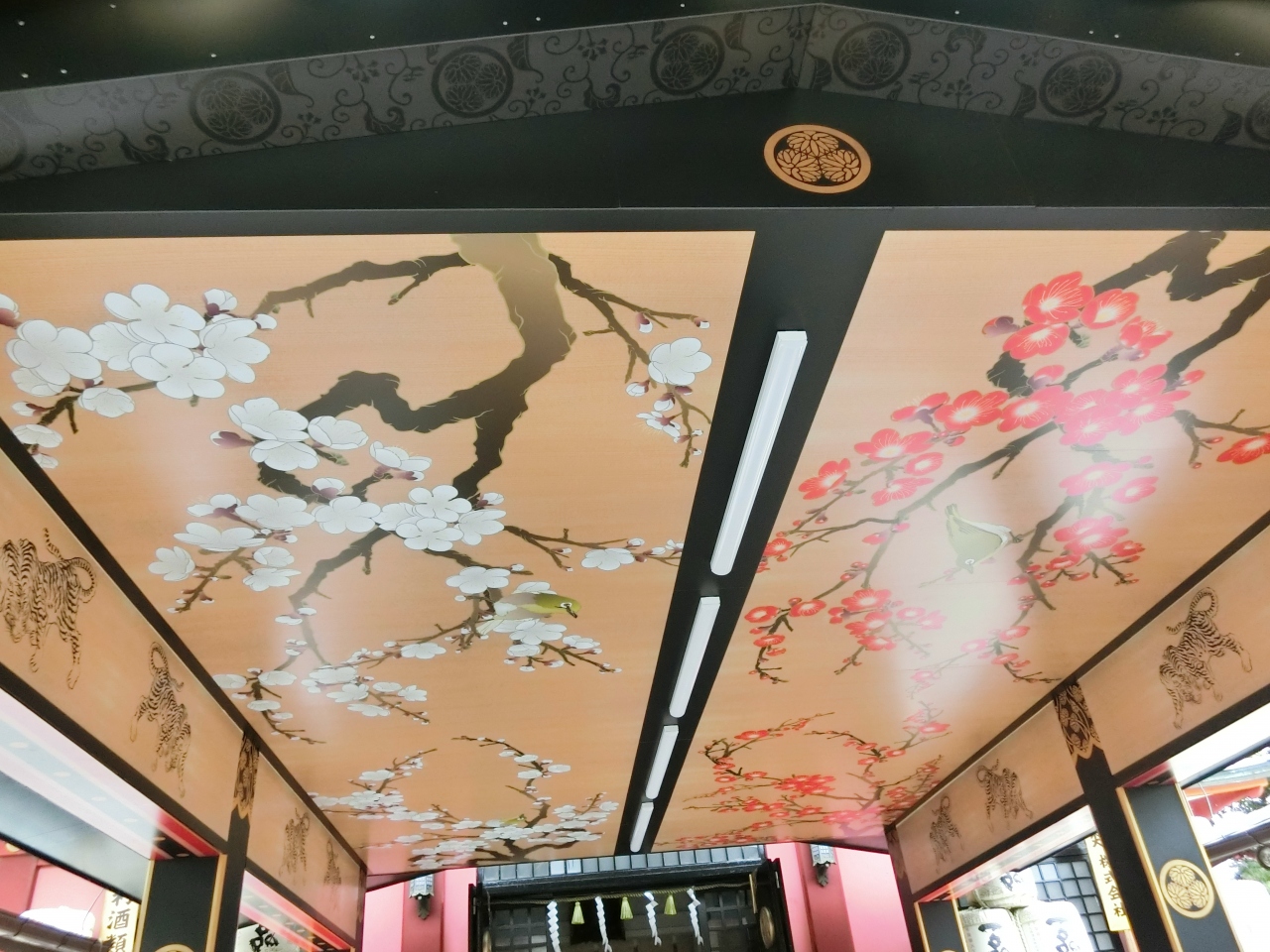 拝殿に行くまでの柱や天井に色鮮やかに絵が描かれていました。