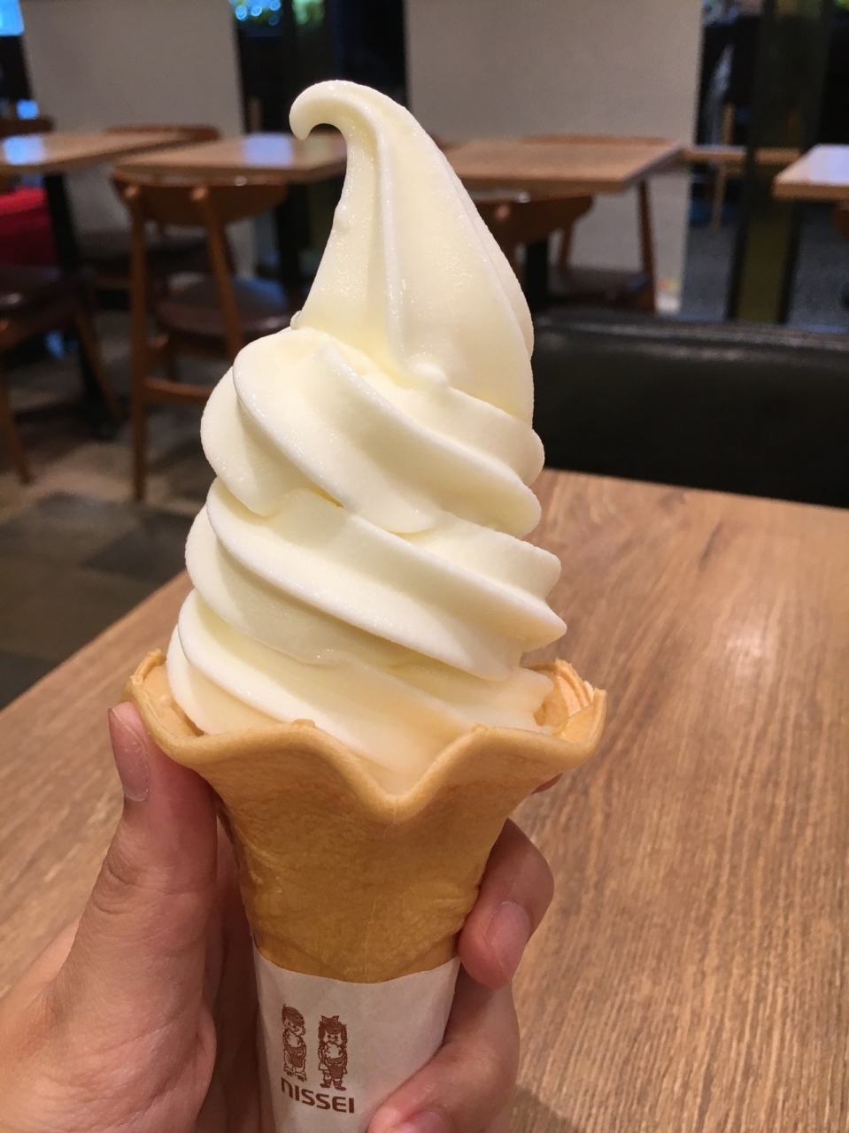 マツコの知らない世界の新千歳空港ソフトクリーム特集でいちばん美味しいといわれたソフトを注文。ひとつ320円。ねっとりしていて、ミルキーで甘いけれど後味すっきり。初めての感覚。平日昼でしたが、店内は混んでなかったので気になる方はお試しください。