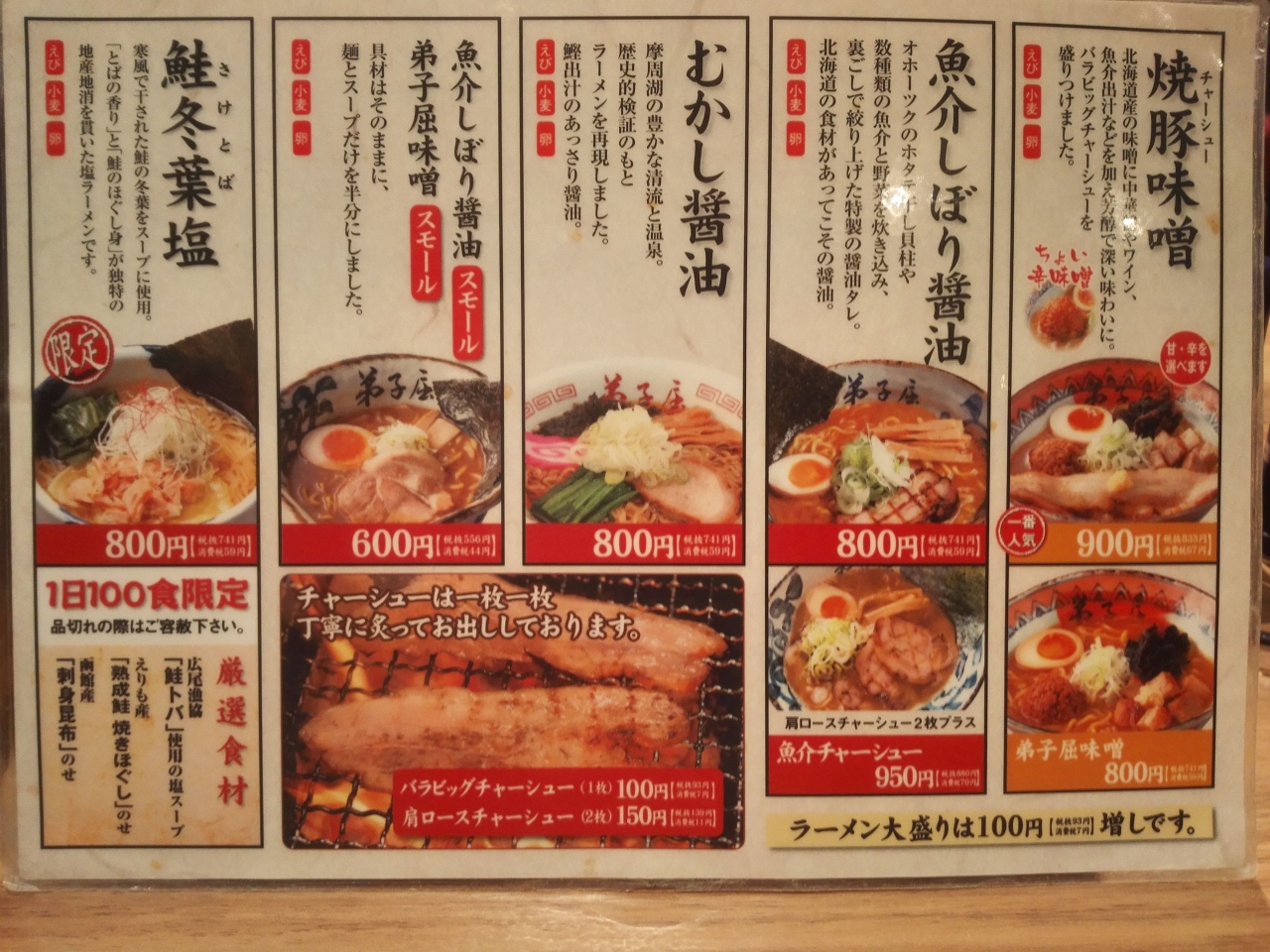 弟子屈(てしかが)と言えば屈斜路湖と摩周湖のある弟子屈町くらいしか思い当たらないが、正に弟子屈町出身のラーメン店。