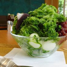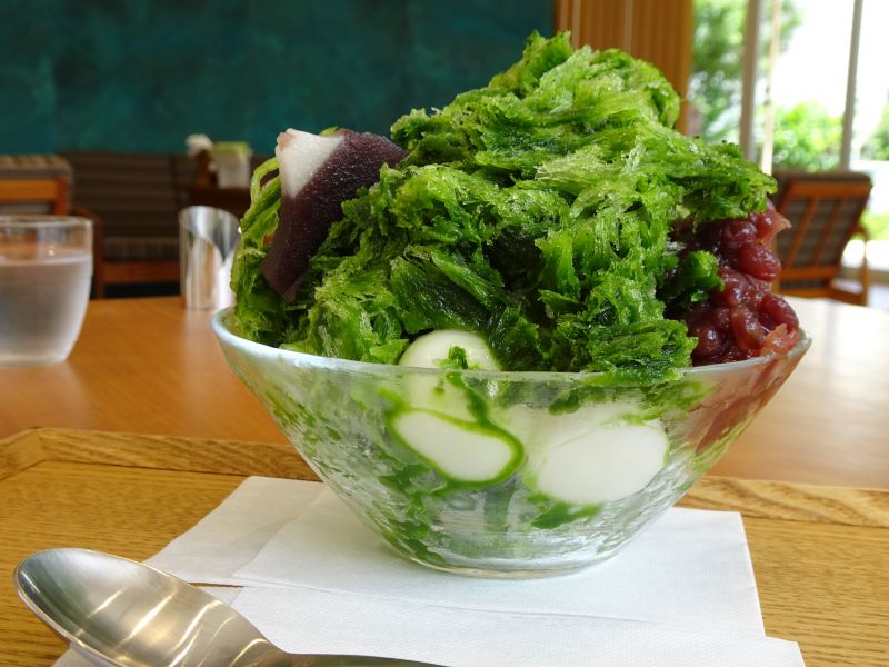 富士山かき氷小倉抹茶をいただきました。味はさっぱりしていて、後味もよいかき氷でした。