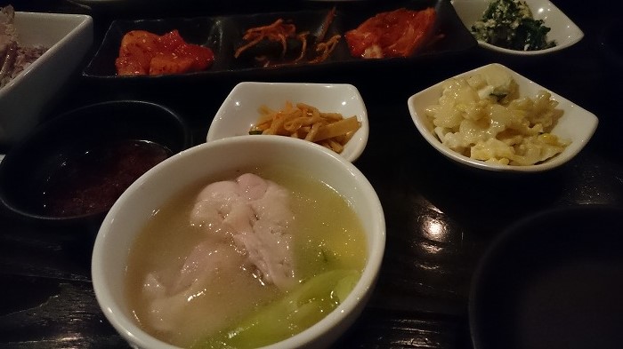 鶏一羽を香味野菜とともにぐつぐつと煮込むタッカンマリ料理が看板のお店。煮込んだ鶏から出るスープは、雑味がなく上品なおいしさ。煮込んだ鶏肉にはピリ辛のタレを付けて食べるのだが、これまたパンチが効いて食欲をそそる。