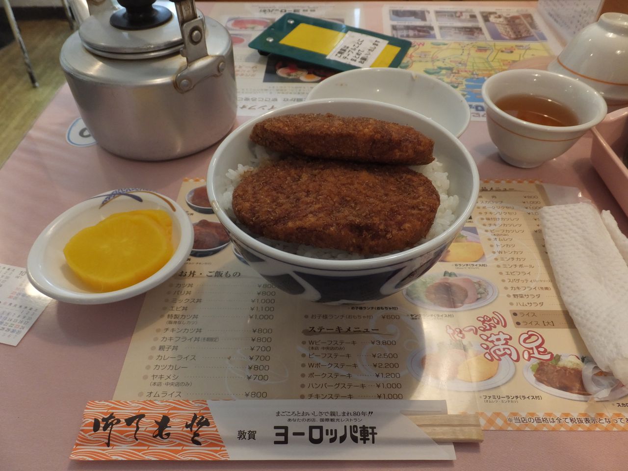 さて、ソースかつ丼で有名なヨーロッパ軒ですが、今回は「パリ丼」を食べてみました。カツの代わりにメンチカツが載っています。結論から言うとソースかつ丼の方が美味しいと思いました。しかも同価格なのでやはり後者の方が食べたぞ、という感じがしていいと思います。