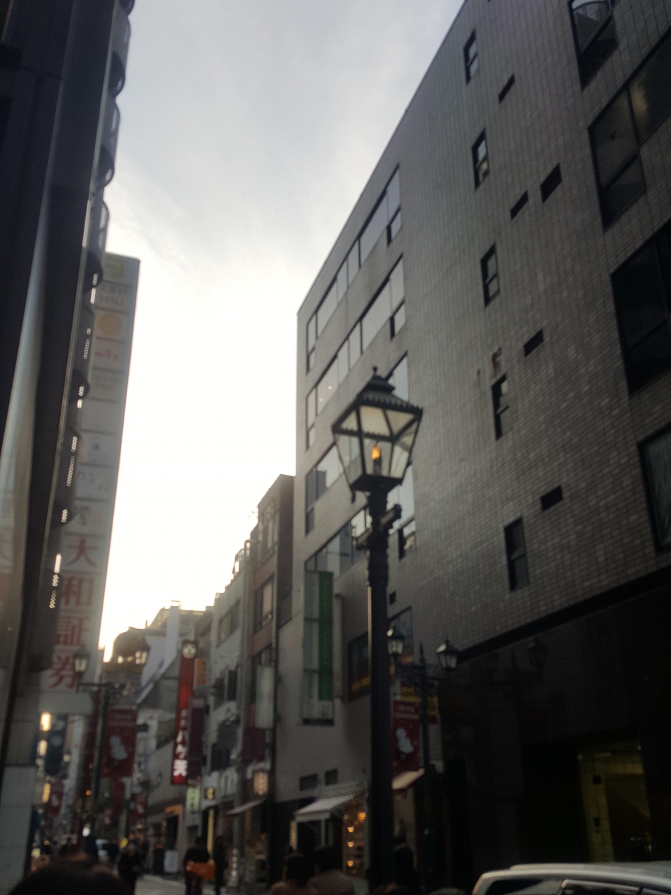 明治時代のガス灯を復元して作られた通りですが他の銀座の通りとも違いあまり華やかなショップなどはなく、小さな飲食店などが多いので午後はほとんど人通りがなく銀座とは思えないほどでした。
