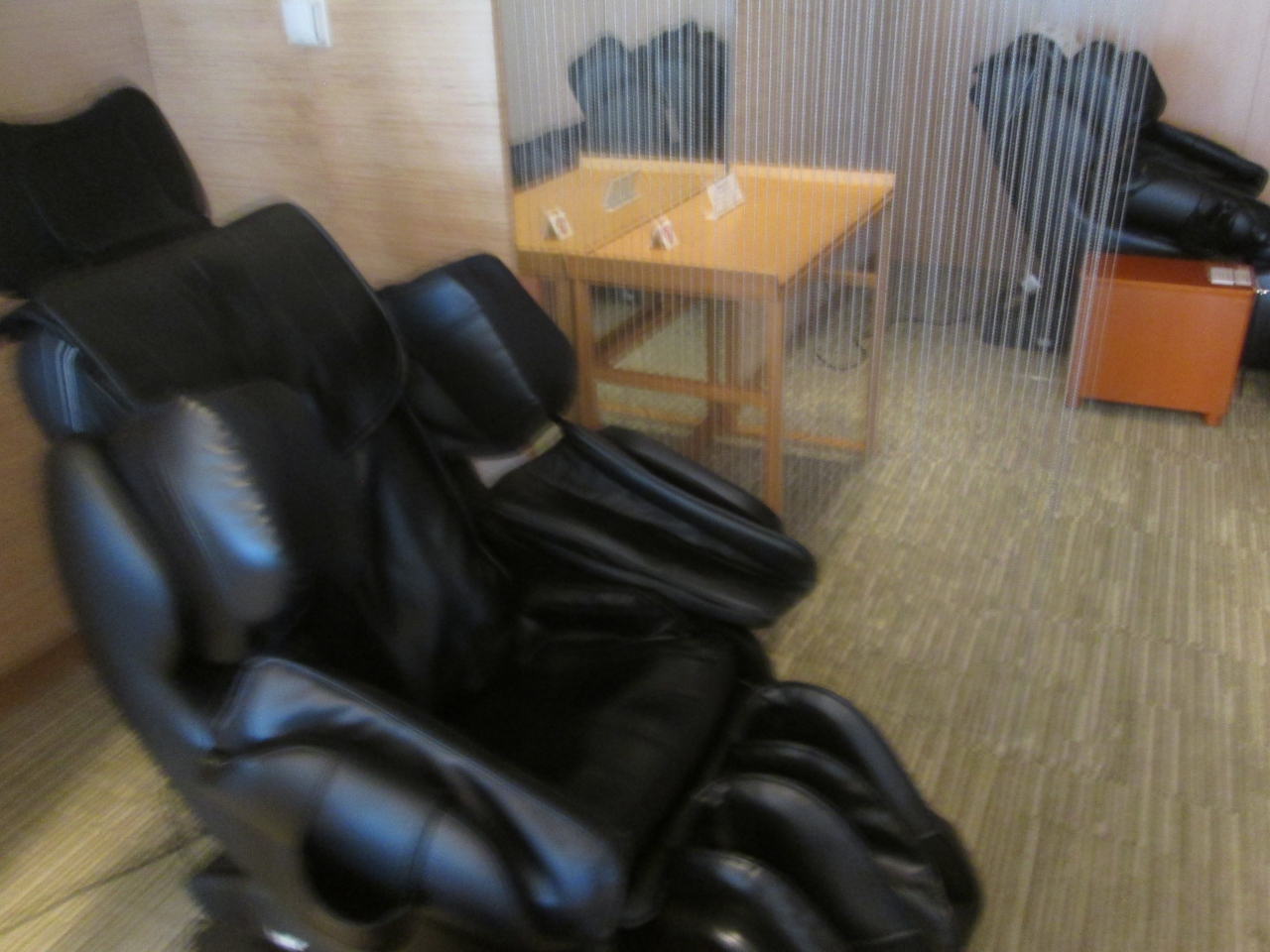 成田空港国際線JALのサクララウンジにマッサージチェアがあります。マッサージ師によるマッサージがありますが10分間で、予約が必要で取れない場合があります。こちらのチェアは時間制限なく利用できます。機械でも搭乗前にマッサージを受けると体が軽くなります。