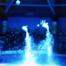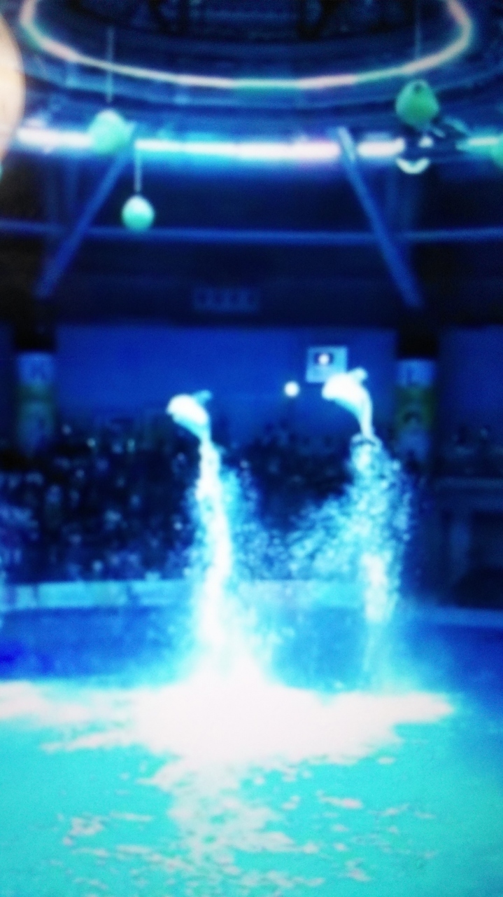 今まで昼間の屋外のイルカショーしか見たことなかったけど、アクアパーク品川のイルカショーはライティングで幻想的。