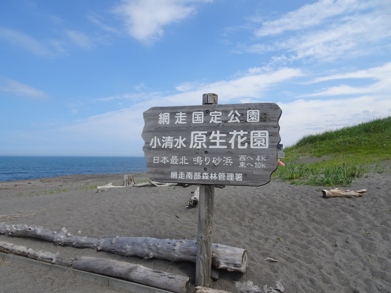 原生花園なので、花が咲き誇っているという程ではないものの、エゾキスゲなどの花をたくさん見ることができ、小清水海岸から見る風景も北海道らしい素晴らしいものでした。