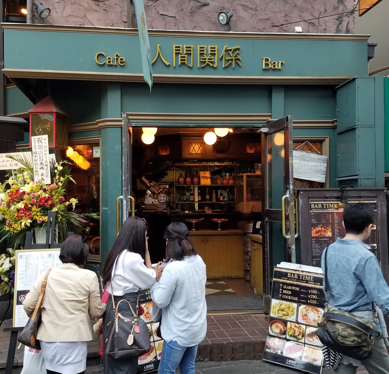 「人間関係」はカフェで、井の頭通りからスペイン坂を入った中ほどにあります。店名がインパクトありますが、コーヒーやスコーンの値段はドトール並みに安いのが特徴です。スコーンは種類も多く、サクサクで美味しかったです。夜はバーになるとのことなので、次は行ってみたいです。