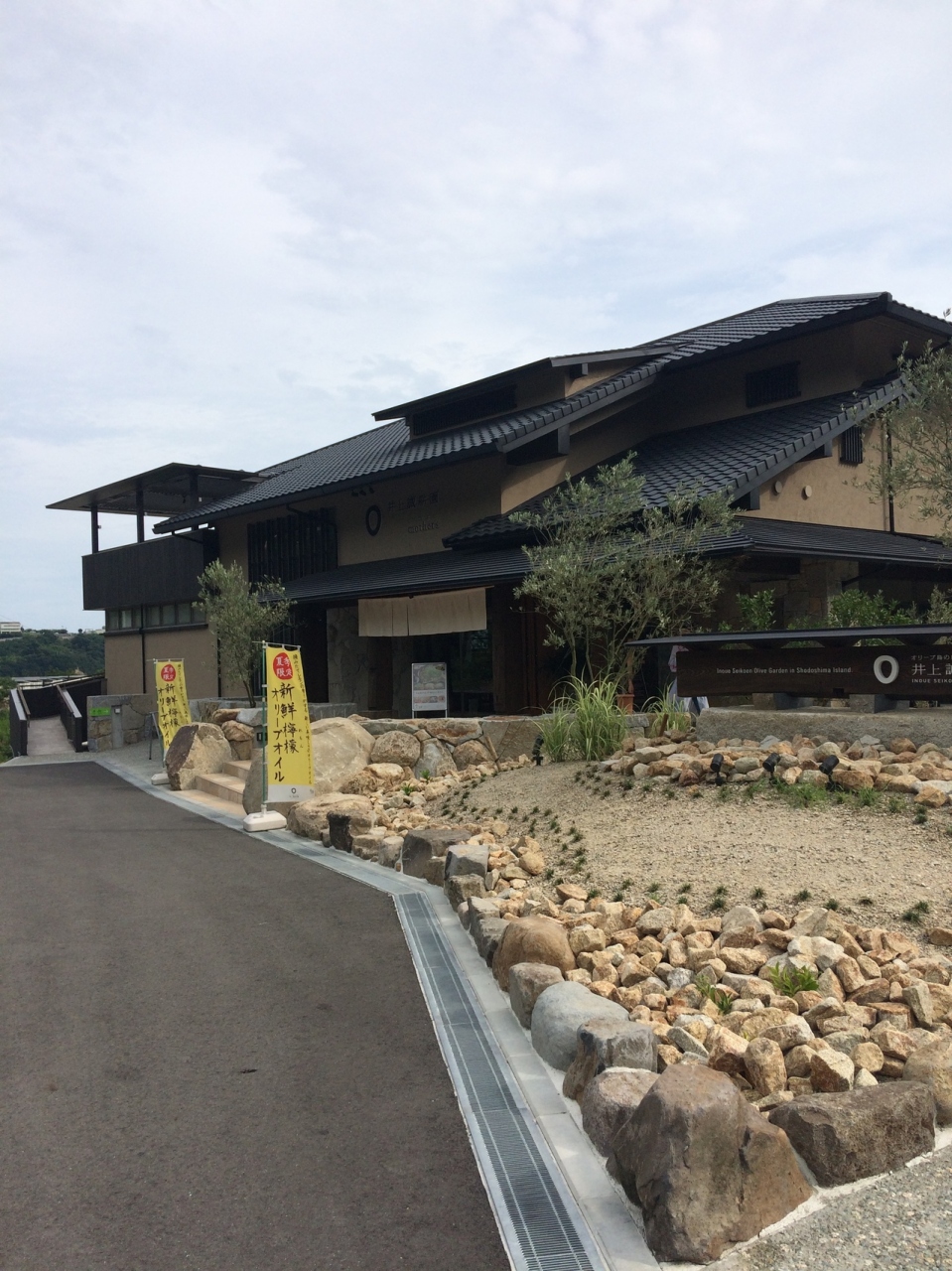田舎の中にある新しく綺麗な建物でした。一階のショップにはオリーブオイルやオリーブの化粧品が売ってありました。新しい建物なのでお手洗いも綺麗でした。二階のレストランでランチを予約して行きましたが、人気みたいで待ってる人もいたのでランチ時間に行かれる方は予約した方がいいと思います。日替わりで三種類のパエリアがあり、鶏肉とマッシュルームのパエリアとサラダを注文しました。机にはオリーブオイルが置いてあり、それをかけて食べれます。パエリアにオリーブオイルが合いとても美味しかったです。