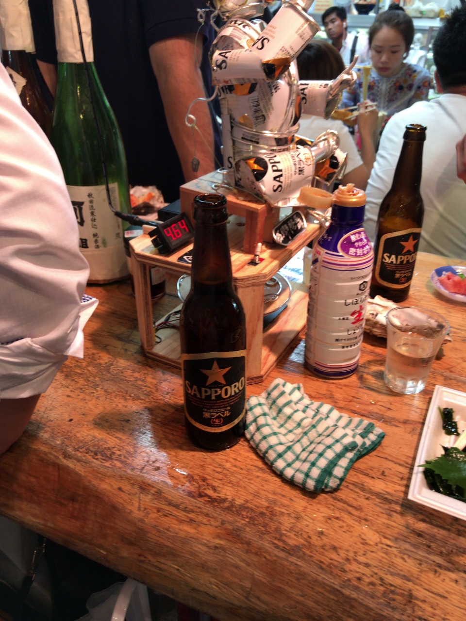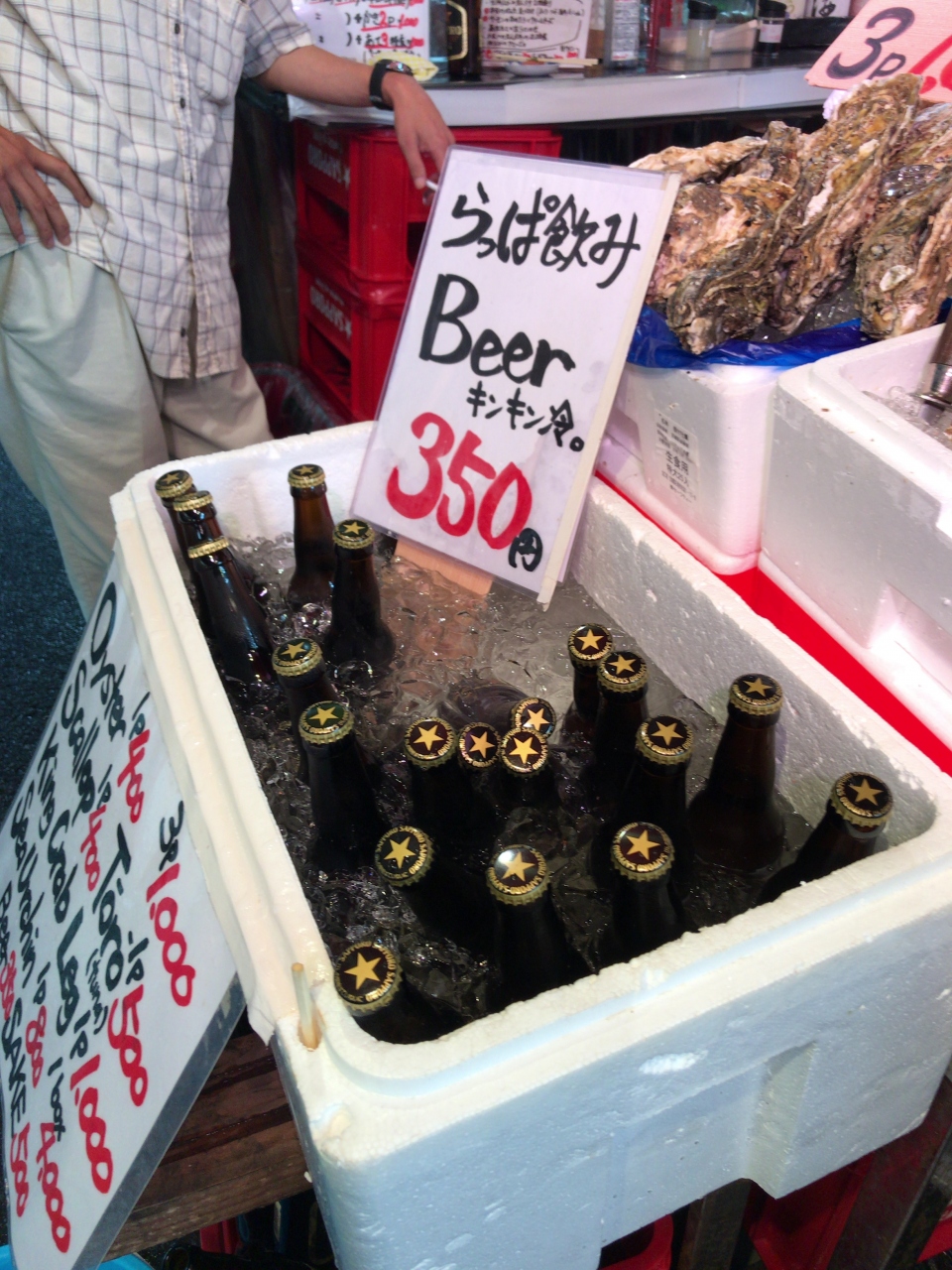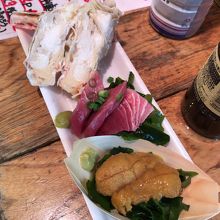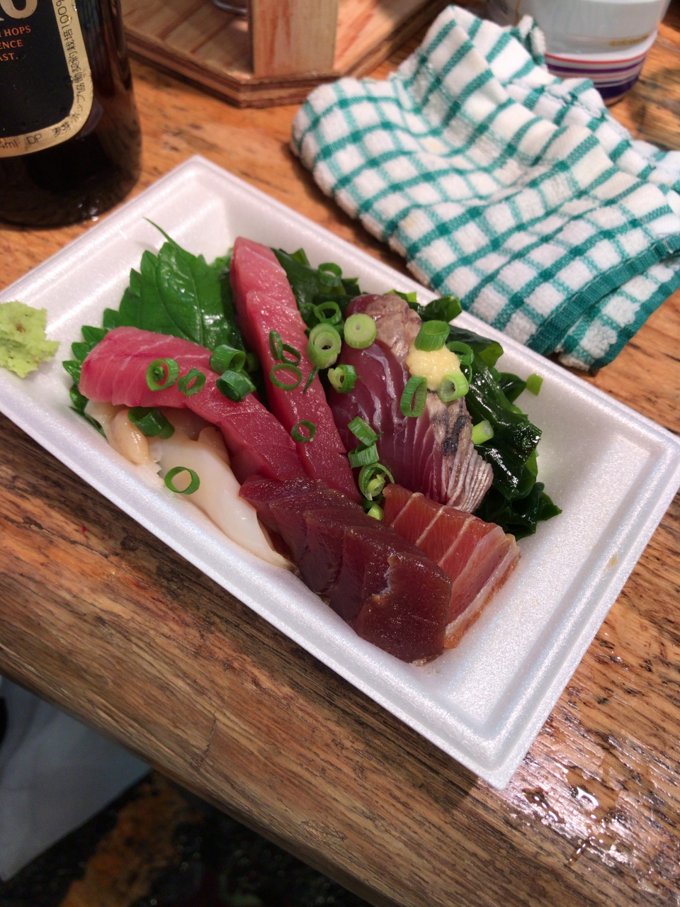 千円で瓶ビール小ラッパ飲みと刺身4点盛り