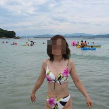 最初は海を見るだけのつもりだったのですが(といいながら一応水着は用意していました。)、折角こんなに遠い伊勢志摩の先っぽまで来たんだしということと、綺麗な遠浅の海で皆さんが泳いでいらっしゃるのを見て、年甲斐もなく水着に着替えてしまいました。
