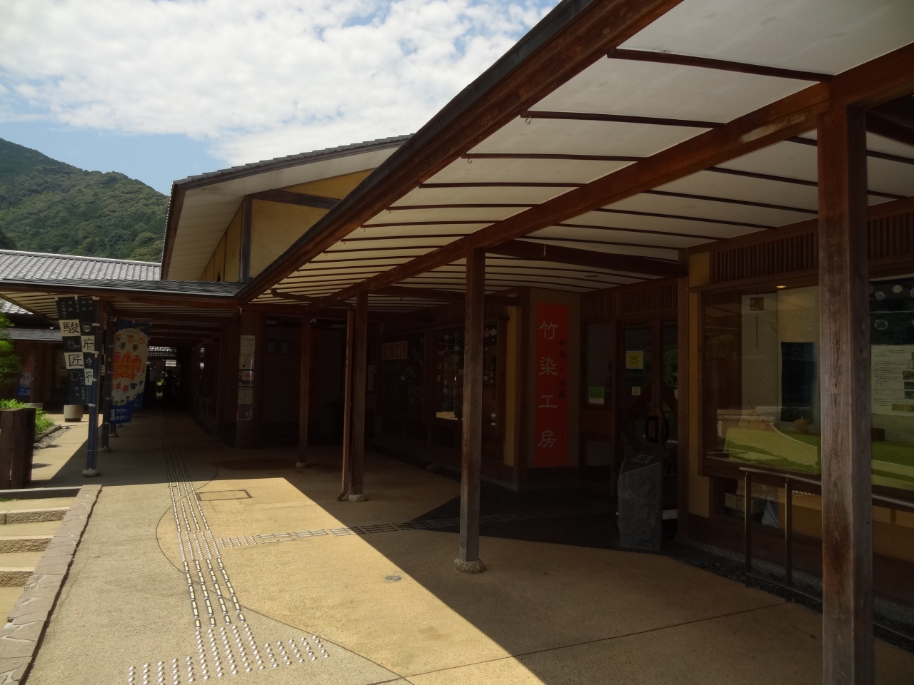 市街地から離れた山あいに位置して、近くでは道路の工事もやっていました。いわゆる観光スポットの穴場的な感じがします。休憩所もトイレも完備していて、お茶など飲みながらゆっくり休憩ができます。伝統工芸の体験工房も何か所かあり、興味があれば体験してみることをお勧めします。お土産コーナーにはいろいろなお土産が販売されていて、買わなくても見るだけでも楽しいです。半日くらい時間があれば、工房での体験をしながらゆっくり過ごすにはもってこいの場所だと思います。