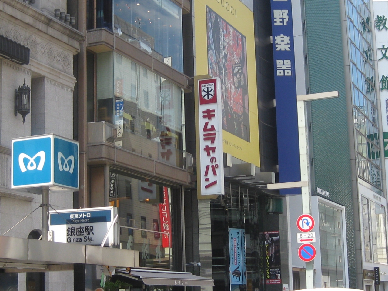銀座中央通4丁目交差点の北西にある歴史あるパン屋、あんパンで有名。明治8年に明治天皇が向島水戸藩下屋敷行幸の際にあんぱんを献上し気に入られ、その後皇室御用達となったそうです。創業者の「木村安兵衛」は茨城出身で明治維新江戸無血開城の功労者幕臣「山岡鉄舟」と剣術で知り合った中で、あんぱんが気に入り「木村家」の看板を揮毫したそうです。本物は関東大震災で焼失してますが銀座本店入口に架かっています。店ではあんぱん以外にもジャムパン等が売られてお客さんで一杯です、2Fがカフェ、3,4Fがグリル、レストランになっています。日本一高価な土地であんぱん一筋、本物はすごいですね。