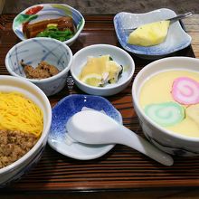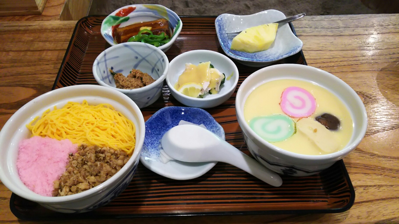 私は茶碗蒸し好きなので、ちょっと豪華に茶碗蒸しと蒸し寿司、煮豚などがセットになった吉宗定食をいただきました。茶碗蒸しは丼ぶりに入っていて、上品なお出汁の味付けでとてもおいしかったです。