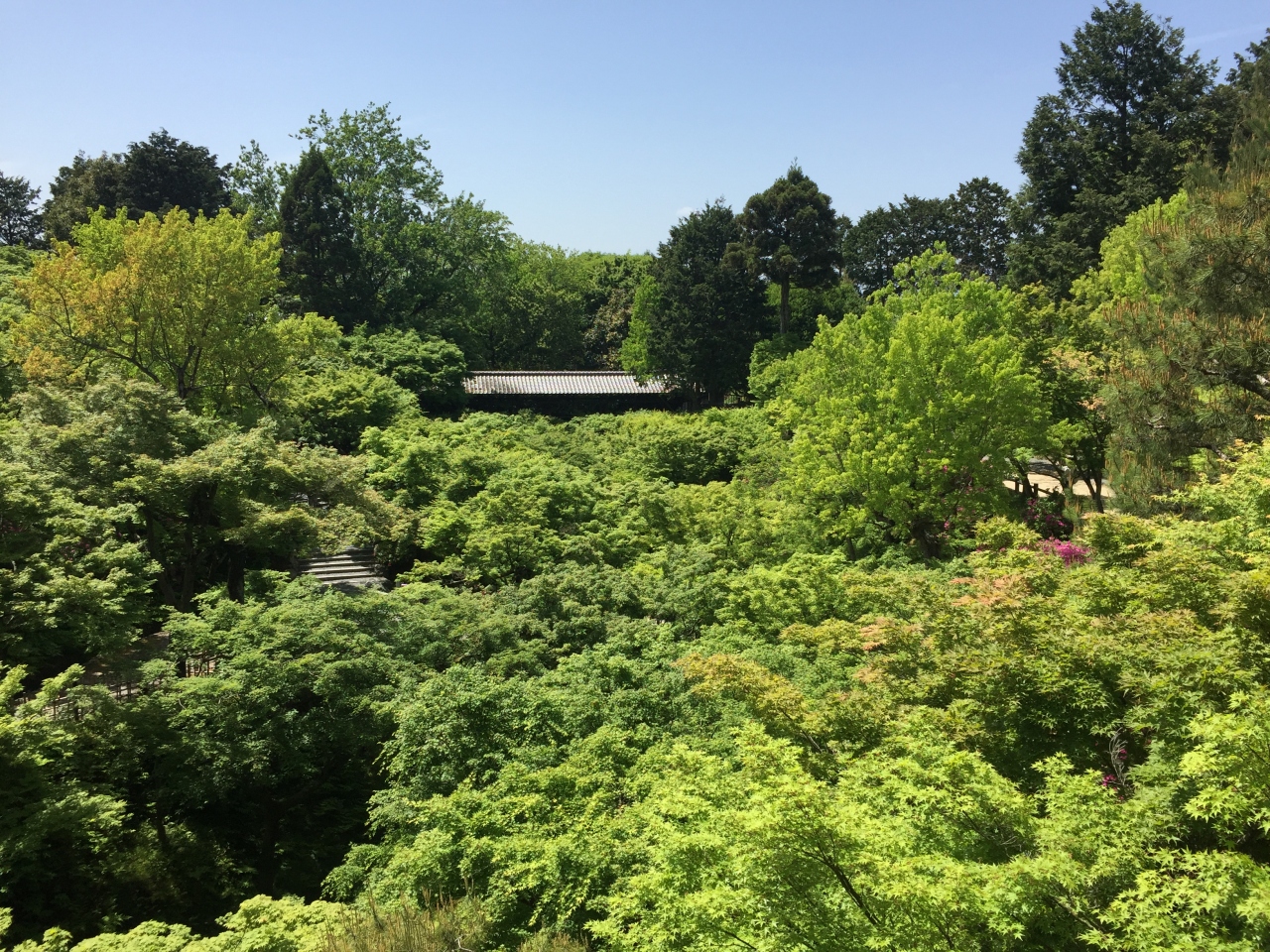 東福寺といえばの通天橋からの紅葉が、新緑でもすごくきれいでした。