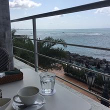 海が目の前のテラス席は青い空 青い海 確かにハワイっぽいかも。