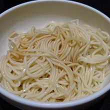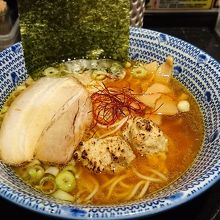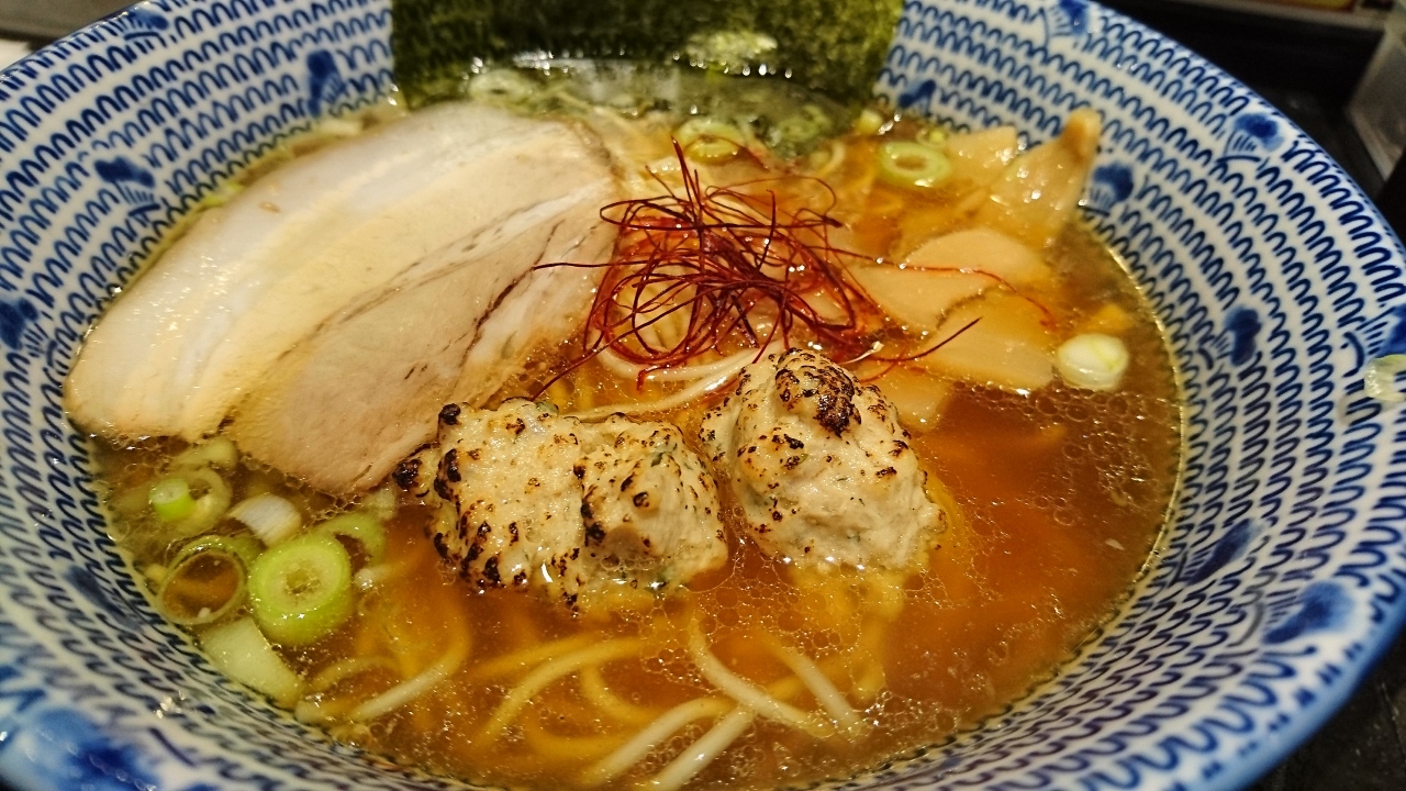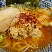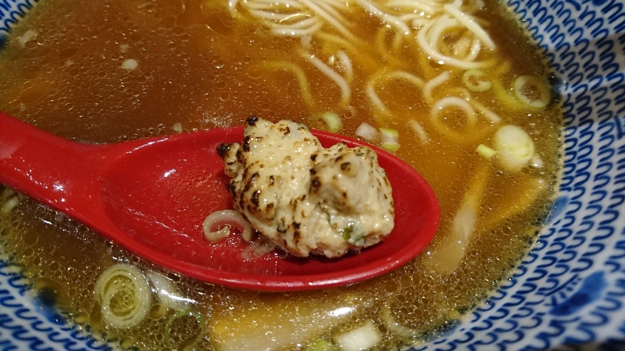 私はあえて、売りにしていた比内鶏から取った美味しいスープの、比内そばをチョイス。このラーメンに限って、替え玉が2玉無料との事! と言うことは、合計3玉が同料金で食べられるという事です。比内鶏のツクネ状の物も美味しく、スープはアツアツ。替え玉を入れても味が薄まらないように、少しタレを回してくれていました。