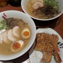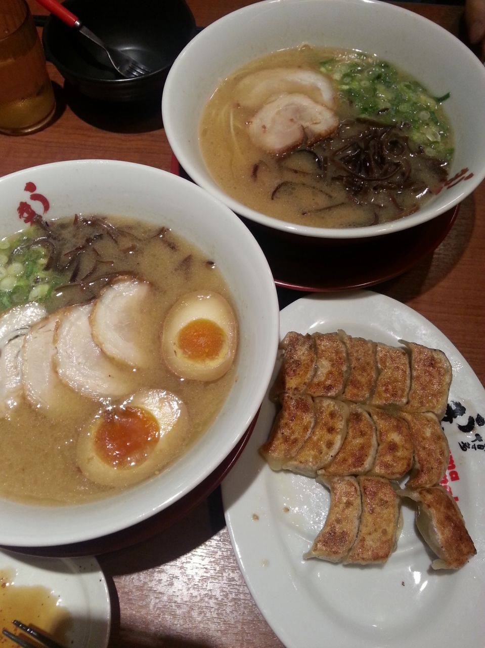 家族でヒカリエホールで開催中の「チームラボジャングルと学ぶ!未来の遊園地」に行き、こちらで遅めのランチを食べました。遅めのランチ時でも、入店待ちの長い行列があるお店が多く、子どもも食べられて、あまり待たずに食べられるお店を探して、こちらに行き着きました。5組ほど待って入店、「チームラボジャングルと学ぶ!未来の遊園地」の半券を見せると、1枚に付き、博多ひとくち餃子(5個入り)が1皿サービスしてもらえました。博多ひとくち餃子の他、博多ラーメン¥800や特製黒ラーメン¥980、煮玉子チャーシュー麺¥980などを家族でいただきました。ラーメン好きの長女だけど、細麺があまり好みでないのか、珍しくあまり食べませんでした。次女はよく食べていました。店内は家族連れが多く、ヒカリエで子連れで食事をしたかったら、おススメのお店です。