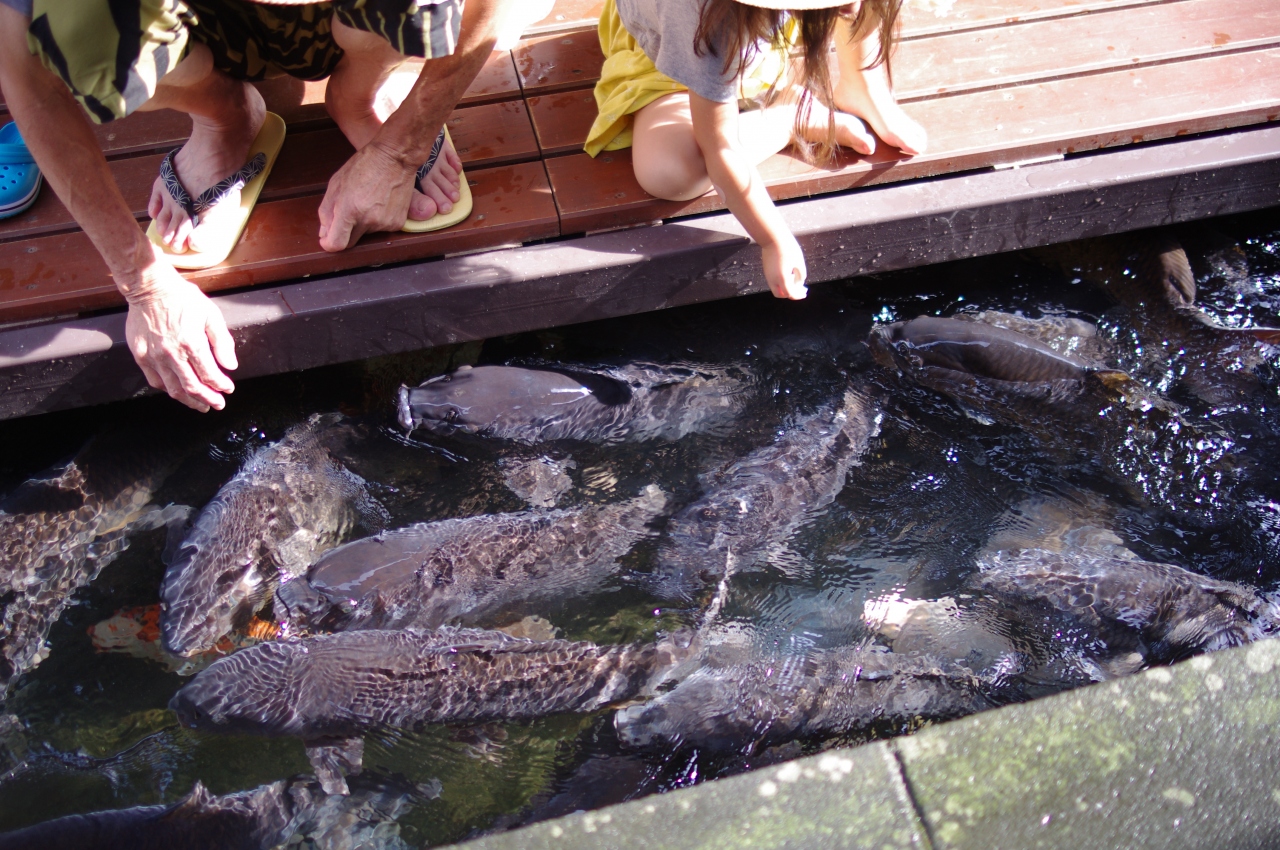 100円で餌を買って与えることができます、すごい勢いで餌に寄ってくる鯉の迫力はすごいです。