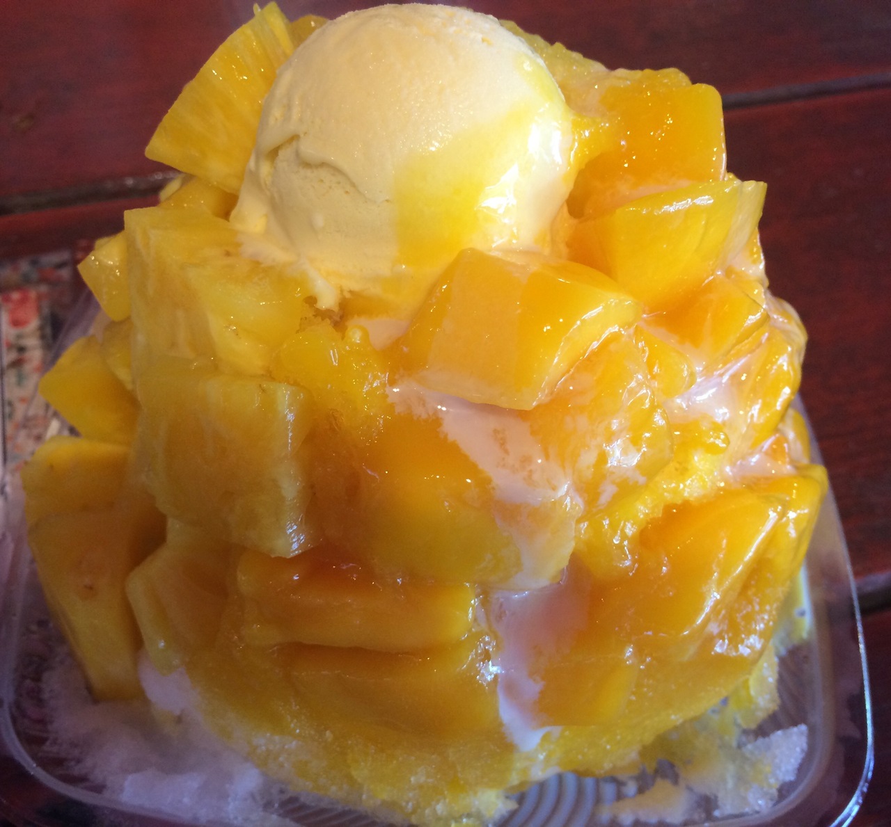 やちむんの里のついでにテレビで観たかき氷のお店が近くにあったので行ってきました。7月20日に行きましたが残念ながらまだ生マンゴーではなく冷凍でした。パッションフルーツのソースはとても美味しく、沖縄感を感じられよかったです。量が多く、2人でシェアしても十分な量でした。
