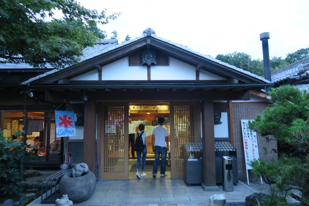 天橋立の奥の、田井の海水浴場で泳いだ後に、日帰り温泉に立ち寄った。立派な施設で、庭園も見事。露天風呂も良かった。人気の温泉で来客も多いが、込み合った感じはしなかった。聞くと、元は料亭の施設との事で、方々に料亭の名残があった。