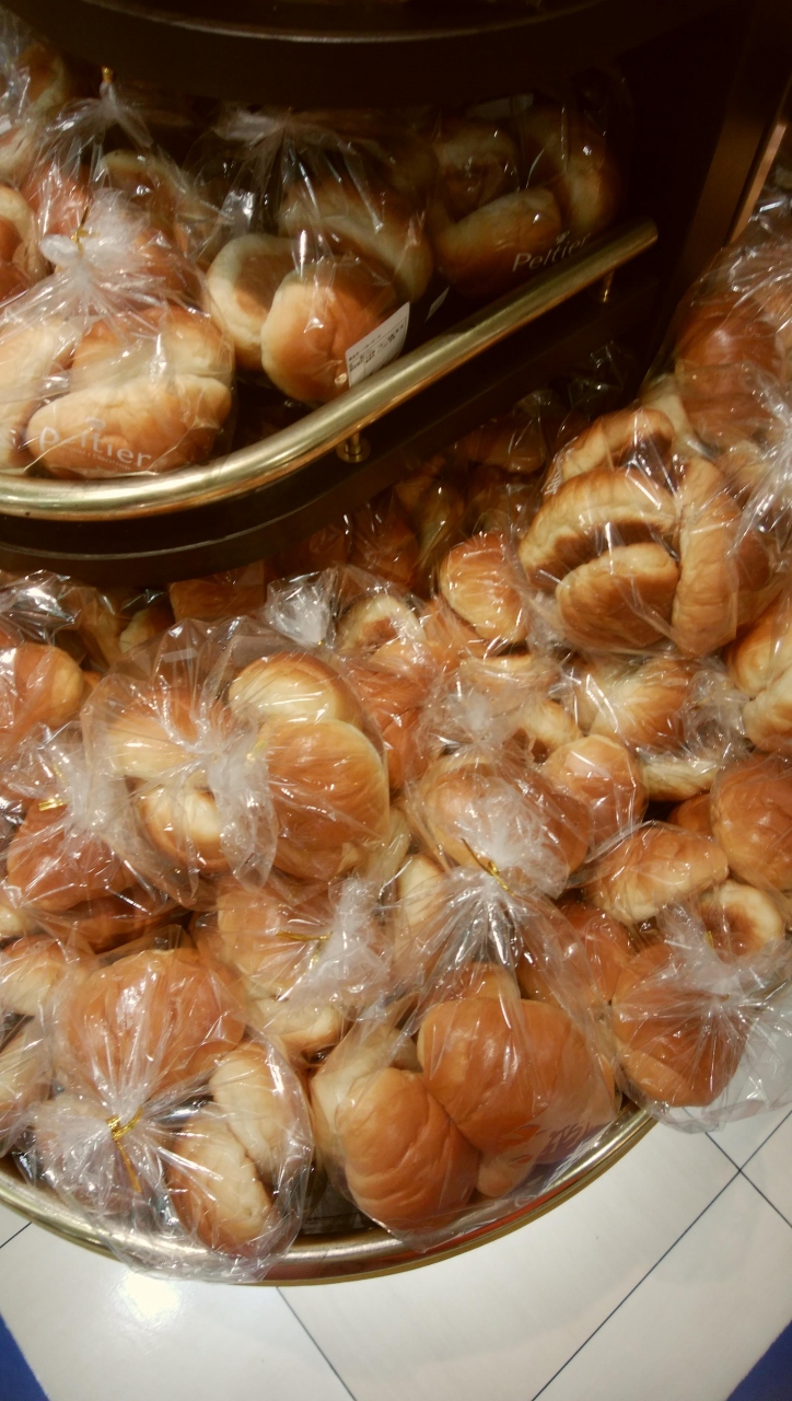 中地階のエリアは天井が低くて、ちょっと圧迫感があるフロアなのです。そこに食品関係のお店が所せましに並んでいます。ペルティエの付近はパンエリア。あんぱんで有名なキムラヤやフランスのフォションのパン屋がそばにあります。こちらのペルティエは狭いながらもケーキのコーナーもあります。パンは食パンやロールパンなどは袋詰めされて販売されています。
