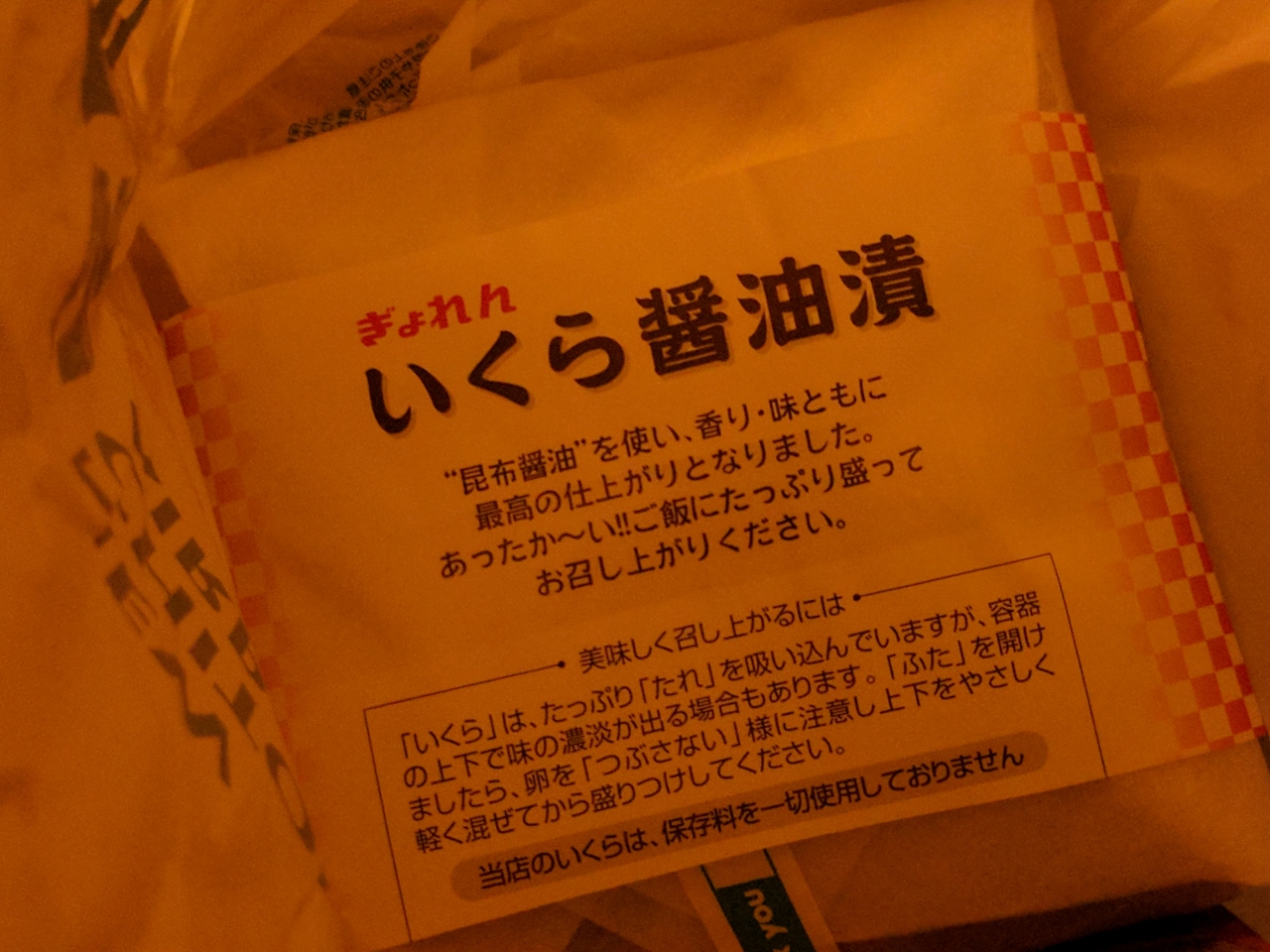 「北海道ぎょれん」に行った。他店で試食したが、やっぱここのいくら醤油漬の味が濃くなく、薄くなくでちょうどいい塩梅だったため選んだ。値段はセール中で他店より安く買えた。プチプチと弾けるいくら。うまかったな。