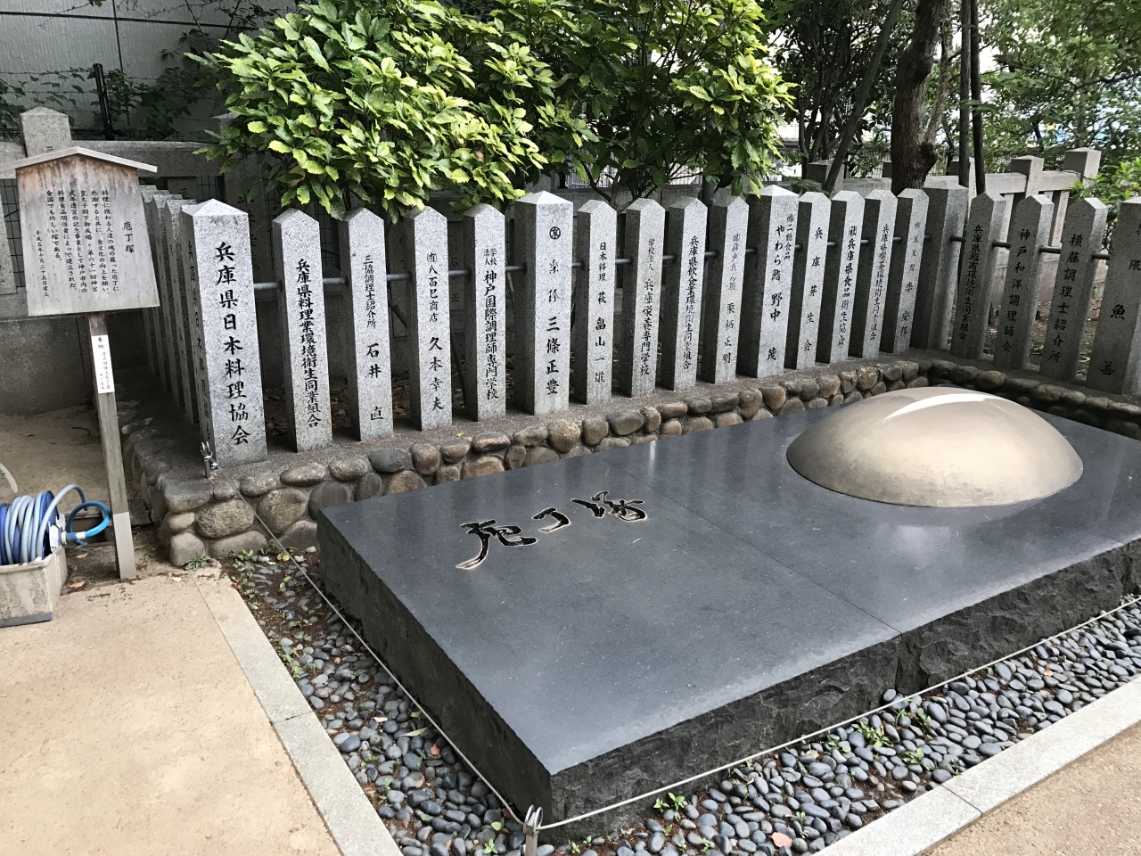 左奥から生田の森に入って生田神社に戻ったところにある、不思議なオブジェ。なんだろうと思って案内板を見ていたら、神戸市内にある日本料理関係者が包丁への感謝の気持ちを込めて建てたそうです。全国的にも非常に珍しいのではないでしょうか。穴場スポットです。