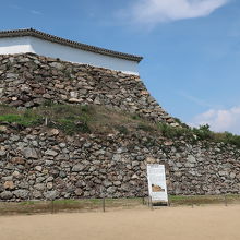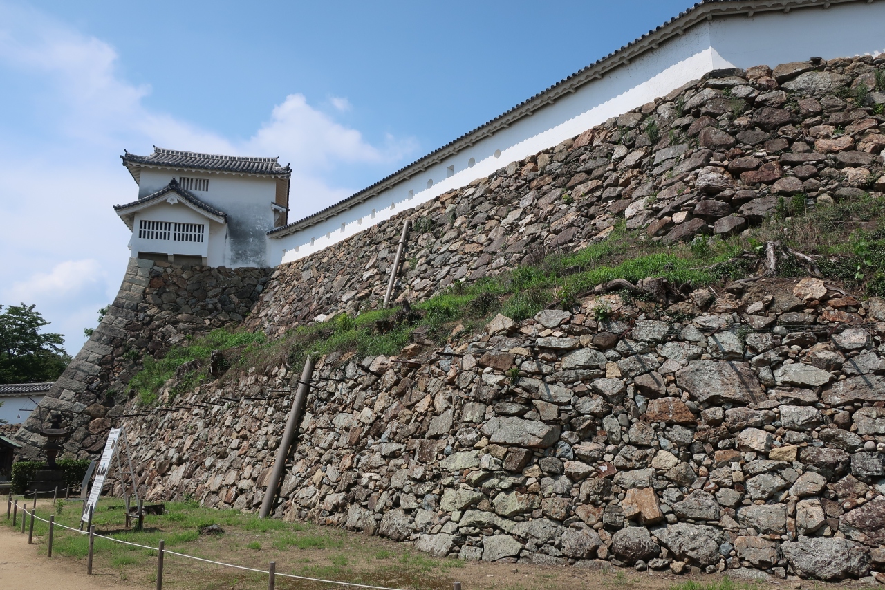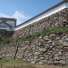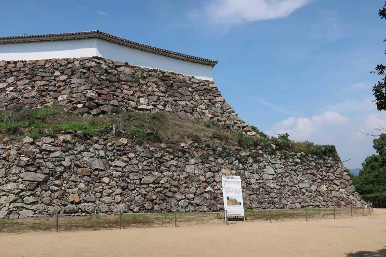 姫路城の正面登城口から右手に天守の庭を横に見ながら進んで行くと上山里下段石垣の前に出ます。姫路城の石垣には整然と加工された石垣が多いですが、ここの石垣は自然石を積んだ荒々しい石垣で古い時代の石垣だと分かります。このため秀吉が官兵衛に普請させた際の石垣とされ、大河ドラマの影響もあり意外と石垣を見に来る人が多くいます。