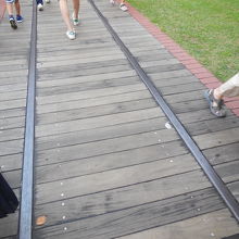 汽車の通っていた線路を生かして造られた観光用通路で、当時の軌道や橋梁も随所に残されていますので、歩いていて楽しい道です。道の周囲にはら赤レンガ倉庫から、みなとみらい、横浜ランドマークタワー、日本丸など新しい横浜の観光スポットがよく見え、観光バスに乗って眺めている気分です。