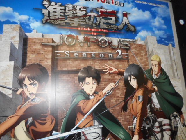 お台場にあるジョイポリスです。「進撃の巨人」の特別コラボイベント中だったので、入場券で入場。お盆休み中で超混雑だったからフリーパスにしなくてよかった(並んでて大変そう)。進撃の大きなフィギュアとか、メニューの料理とか、お土産品とかもあってよかったですよ。