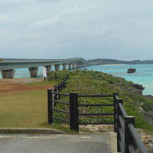 この辺り一帯は浅瀬なのでエメラルドグリーンの海の色が素晴らしいです。両サイドにトイレ、駐車場、展望スペースがあり利用しやすいと思います。オフシーズンでしたので通行料が少なくのんびりと渡れました。池間島の方にはレストハウス、売店もありますのでおすすめです。