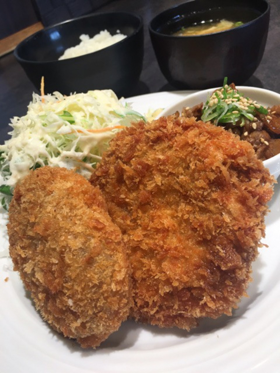 。ミンチカツは箸で割ると肉汁が溢れてきます。焼肉までついてきてボリューム満点です。お肉好きの方には良いお店。