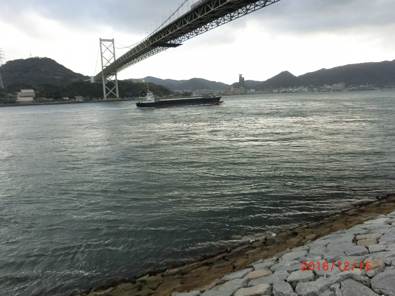 どんよりとした雨上がりの関門海峡は不気味でした