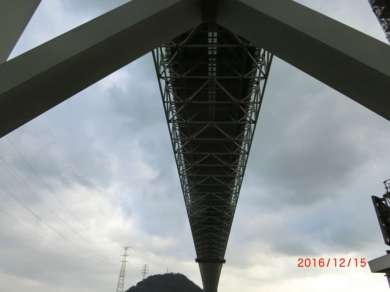 門司港のめかり観測遊歩道からも関門橋を真下から見上げたが、