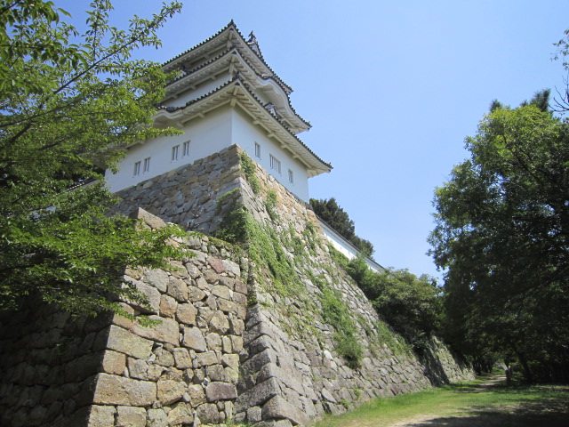 明石駅のホームからも見える塀でつながった二基の三重櫓が明石城の印象を強くしているように思えます。
