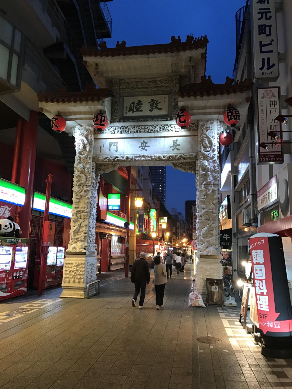 神戸の中華街の一番東側にある入口の門です。いわばチャイナタウンの顔という感じでしょうか。凄く壮麗な感じで、中国ムードをぐっと高めてくれました。この門は福を呼ぶとも言われているようですね。夜のライトアップも美しく、昼、夜どちらでもおすすめの観光スポットです。