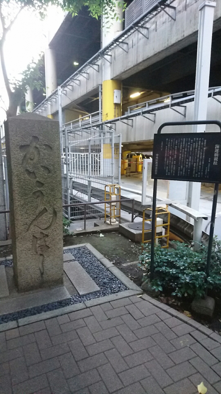 東京証券取引所から50mほど南に親柱だけが残された橋です。江戸時代の初期からこの場所には橋が架かっており、明治政府による商業化計画に伴って、水運の中心となることを期待して海運橋と名づけられました。上流の兜橋、下流の千代田橋とともに川の埋め立てに伴って橋は撤去されたため、今では親柱だけが残されています。