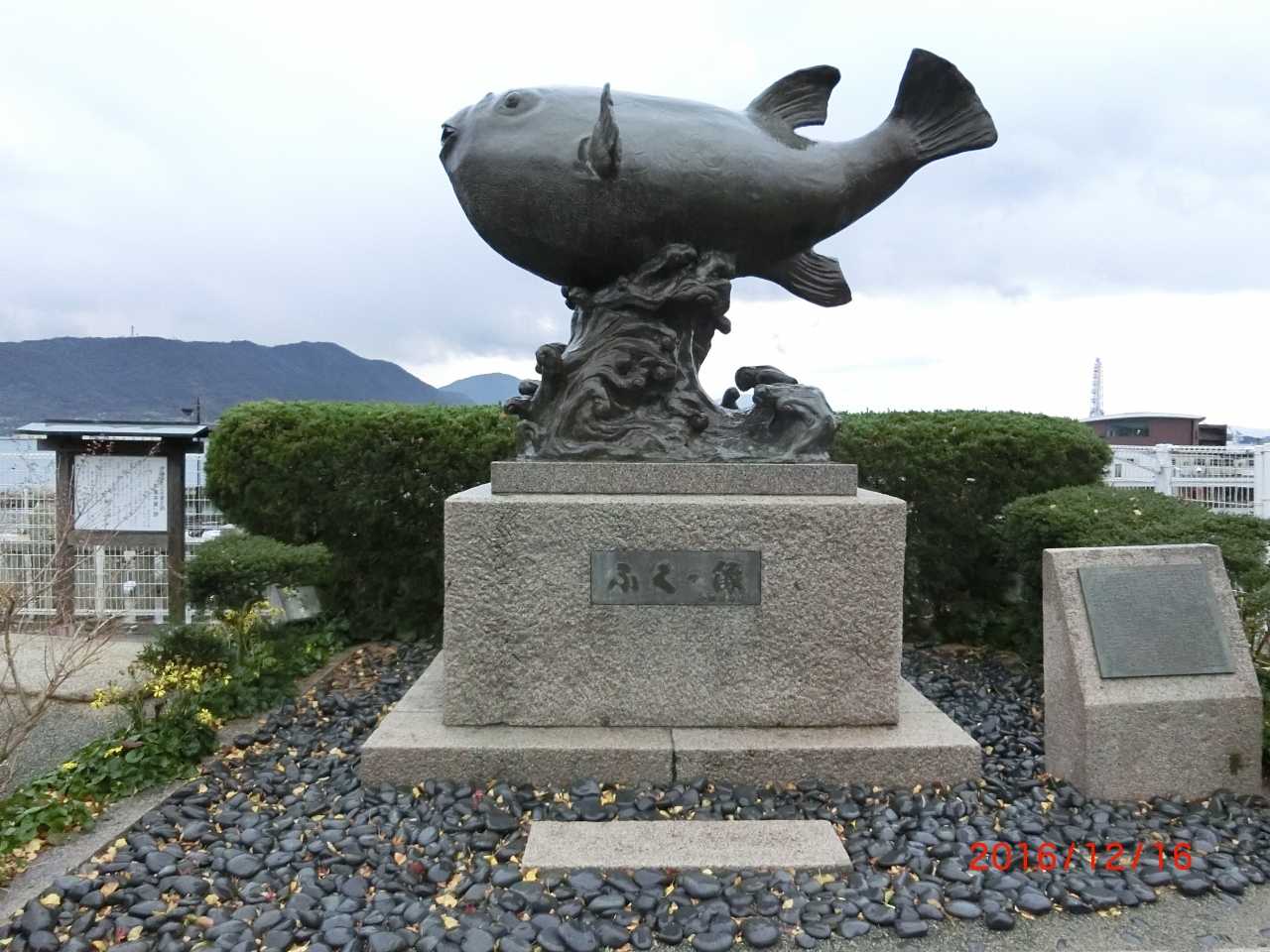 亀山砲台跡があった。世界最大のフクの銅像がありました。