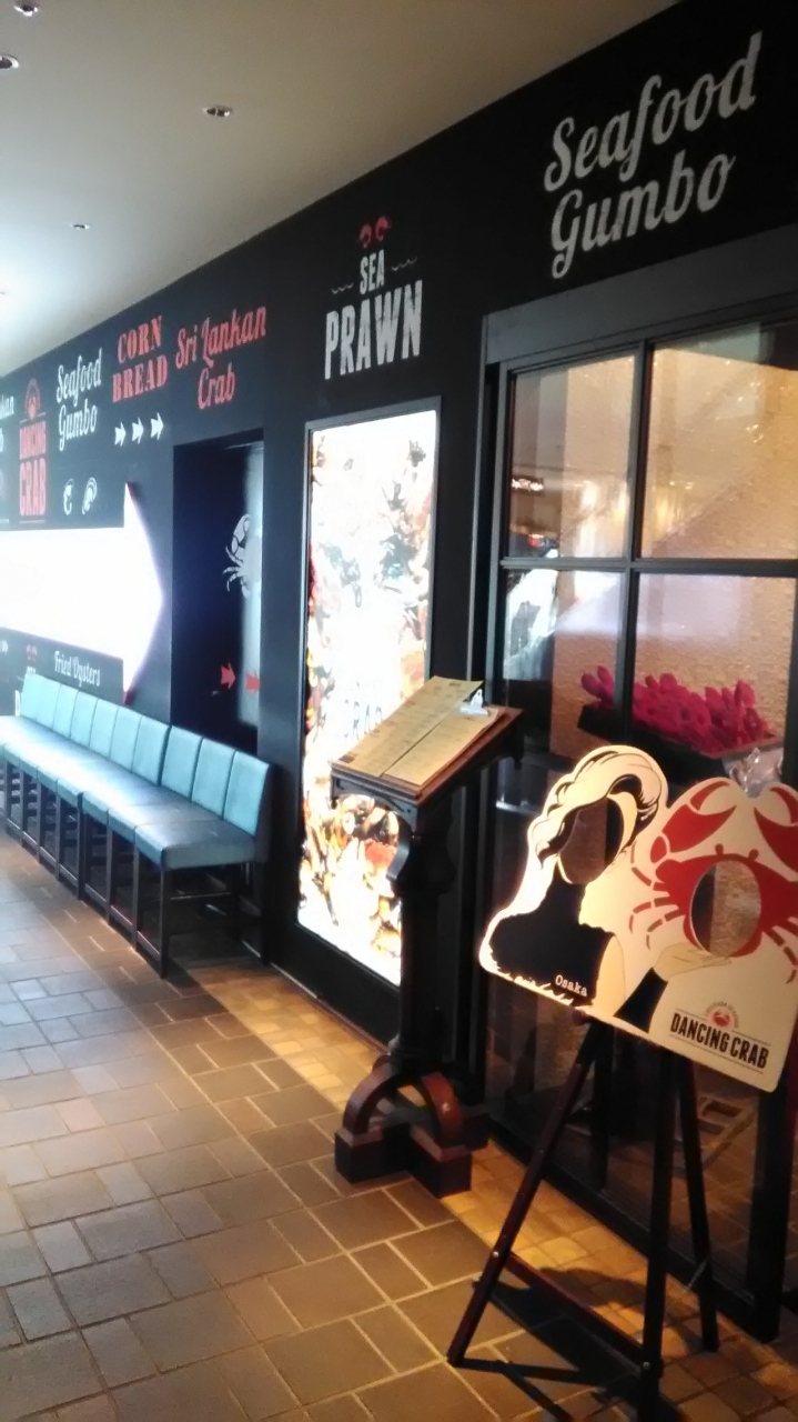 グランフロント大阪南館八階にあるダンシングクラブで昼食をしました、平日のみのメニューで、三千円コースにしました、シンガポール発のお店が大阪にきました。テーブルの上にかに、えび、ハム、コーン、にんじん、ブロッコリーがお皿なしに紙の上に出され、手でたべます、食べていると、スタッフが通路でダンシングします、名前のゆえんです。