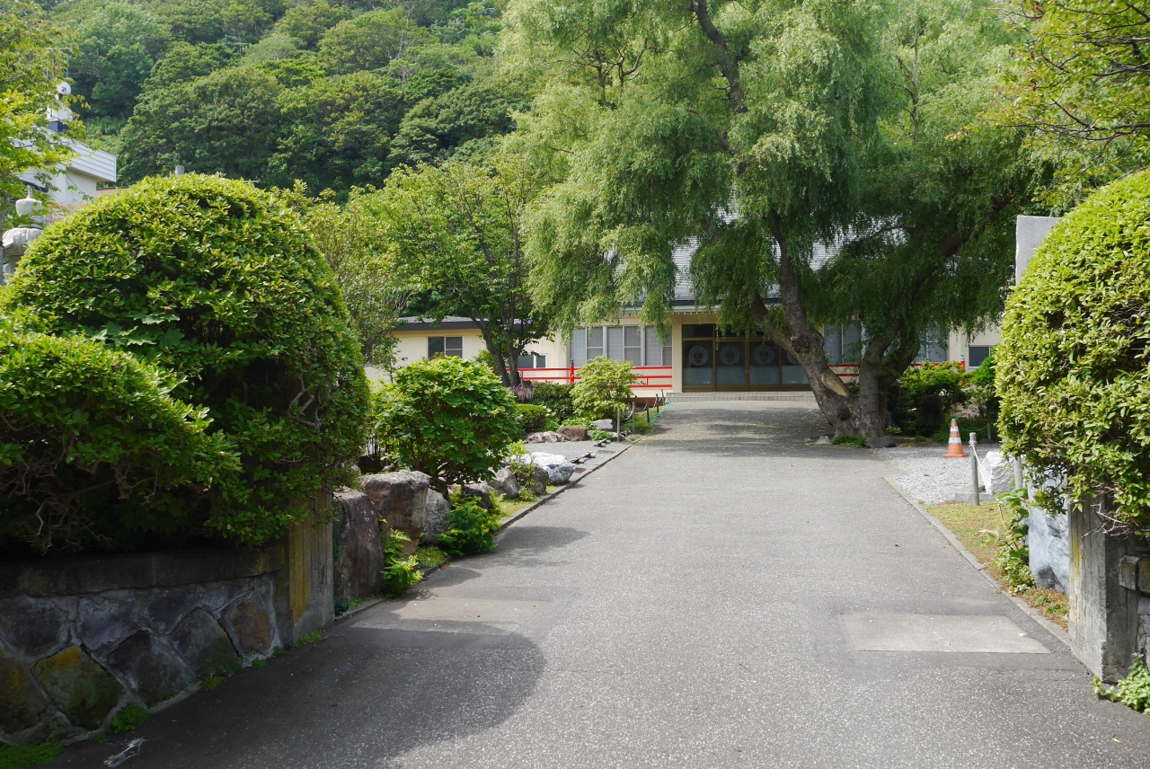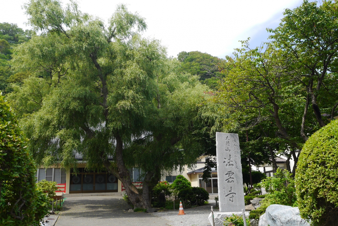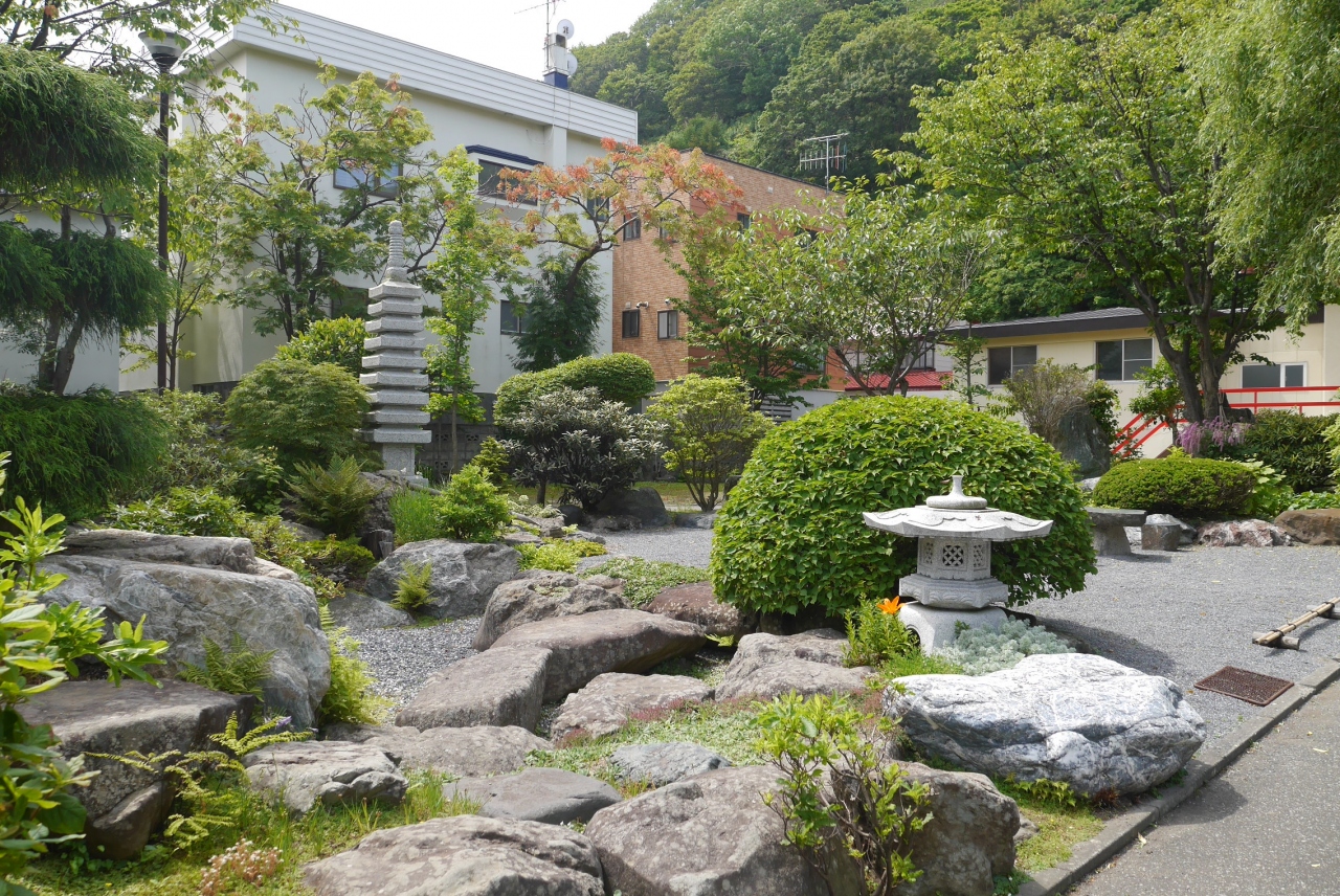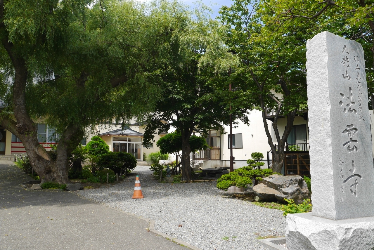 稚内駅から歩いて10分位、住宅地の外れにあり、北門神社の参道鳥居の横にあるお寺です。入口から中を見ると大きな柳の木が葉を繁らせ、両側に庭園が造られています。