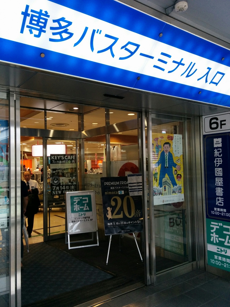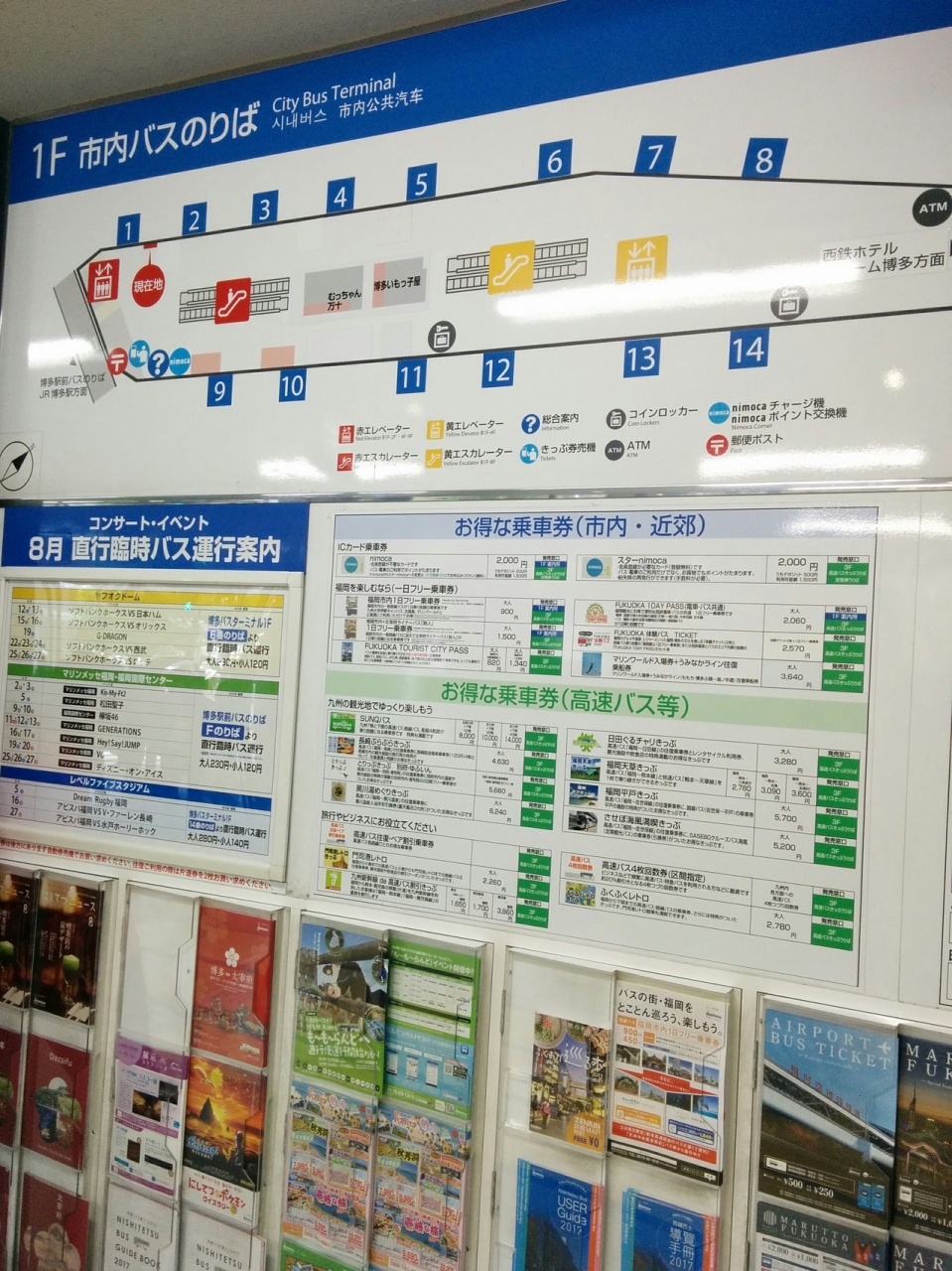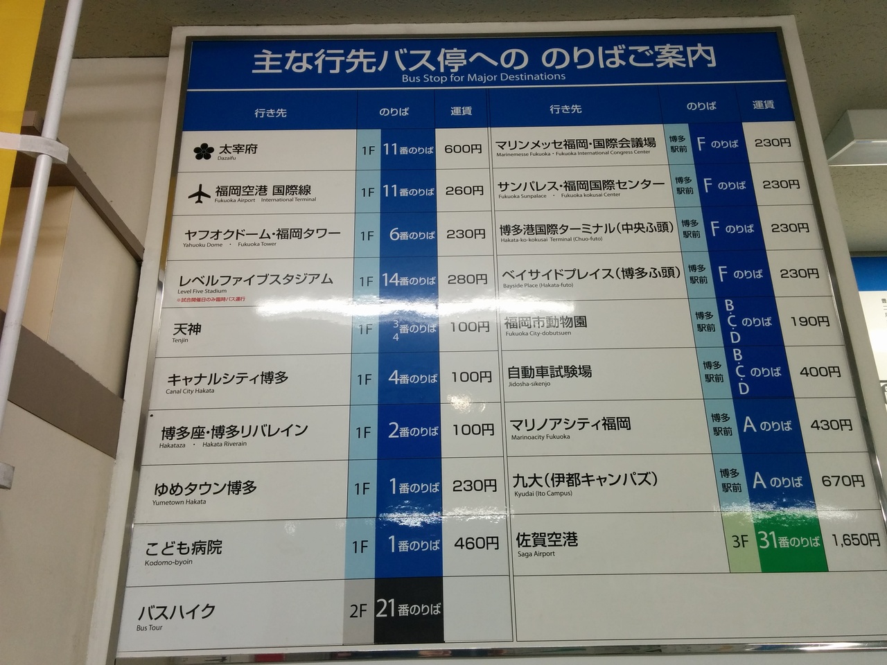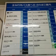 そこで博多バスターミナルのバス乗り場などを確認すると、1階に市内バス乗り場、3階に高速バス乗り場があり、各乗り場には案内表示があり初めての観光客でも分かりやすいバスターミナルとなっていました。