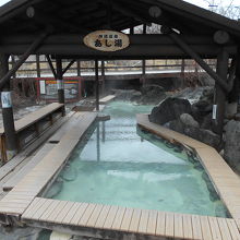 川湯温泉の中心、郵便局の前にあります。足湯は広くて露天風呂かと思うくらいで20人くらい座っても余裕があるくらい広々としています。源泉かけ流しでしょうか、お湯は若干熱めで硫黄の香りが漂っています。気軽に利用できるので散策のついでに立ち寄るのをお勧めします。