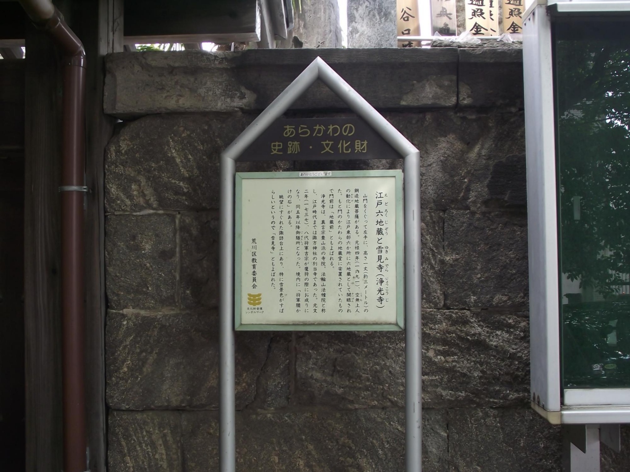 JR日暮里駅と西日暮里駅間の西側をほぼ南北に走る諏訪台通り沿いには寺院や神社があり、その一つがここ真言宗の浄光寺 (雪見寺) です。