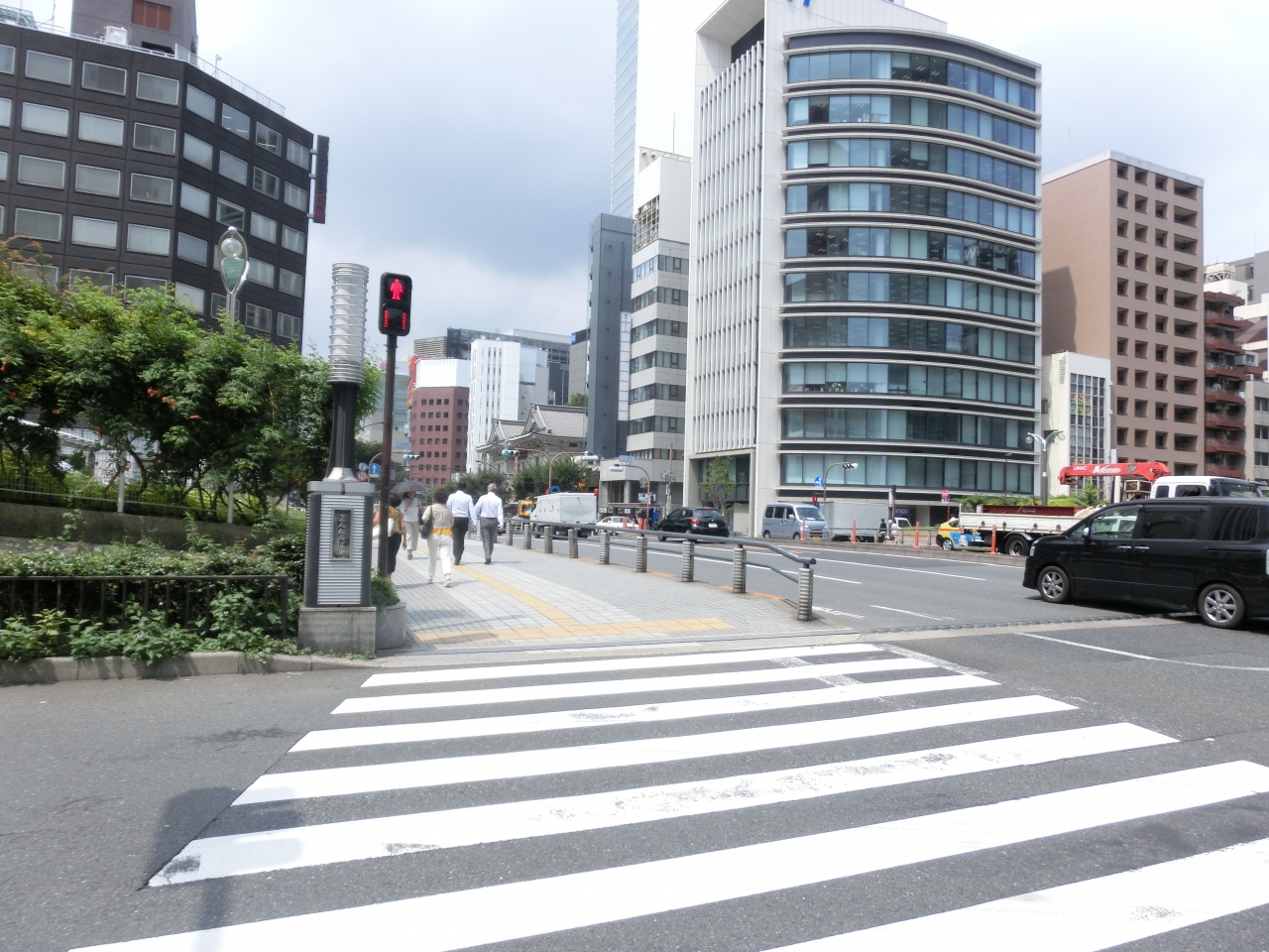 晴海通りを進み、歌舞伎座前から築地へ入る手前にある。