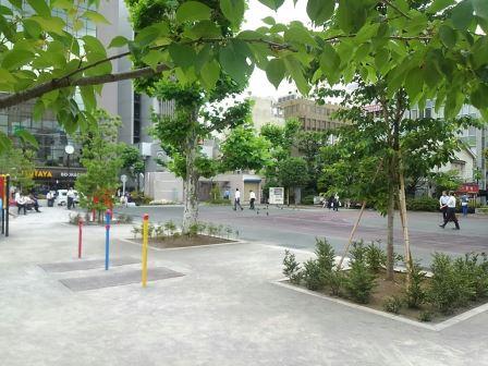 東京支社勤務時代、新橋駅から支社までの通勤経路にあった大きな公園。地面が陸上トラックになっているところから推察するに、学校の跡地なんでしょうか。ランチタイムには付近のサラリーマン・OLさんたちの憩いの場になります。新橋駅烏森口側の入口から入ると右手には喫煙所があって、大勢の方が立ち寄って一服。また左手には元・校舎と思しき港区の生涯学習センターがあり、入口前に港区図書館の本の返却ボックスが置かれているので、自分は出勤途中によく利用させてもらっていました。また、この公園には地域ネコも何匹か住み着いていて、勤め人から餌をもらっている姿をよく見かけもしました。