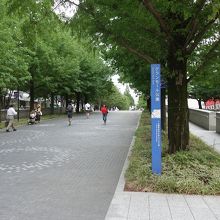 高島駅付近からみなとみらい地区の中心部へ向かって両側をビルに挟まれた石畳の広い歩道を歩いて進むことが出来ます。きれいに整備されていてベンチも有るので時々休みながら進めます。またカフェやレストランも多くて休憩や飲食の環境も整っています。