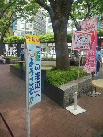 成田空港からのバスを降りると、「あれ?いつも凄い行列なのにほとんど並んでない」。まずは近くの交通会館にある交通飯店で早い昼ごはんを食べてから取って返して行列に。ドリームジャンボ宝くじの発売初日からちょうど2週間目の平日の昼間、11時30分過ぎです。なんの謂れもない日だったんでしょう。宝くじを買う趣味のない自分ですが、こうして旅先で有名な売り場がふと目に入りしかもすぐに手に入りそうだ、というのはきっと何かのお告げだろうと感じた次第です。整理の警備員さんが「窓口にこだわりがなければすぐに買えます」ともおっしゃってましたが、せっかくですから1番窓口で…あれ?でも1番窓口って1つだけじゃないんですかっ!