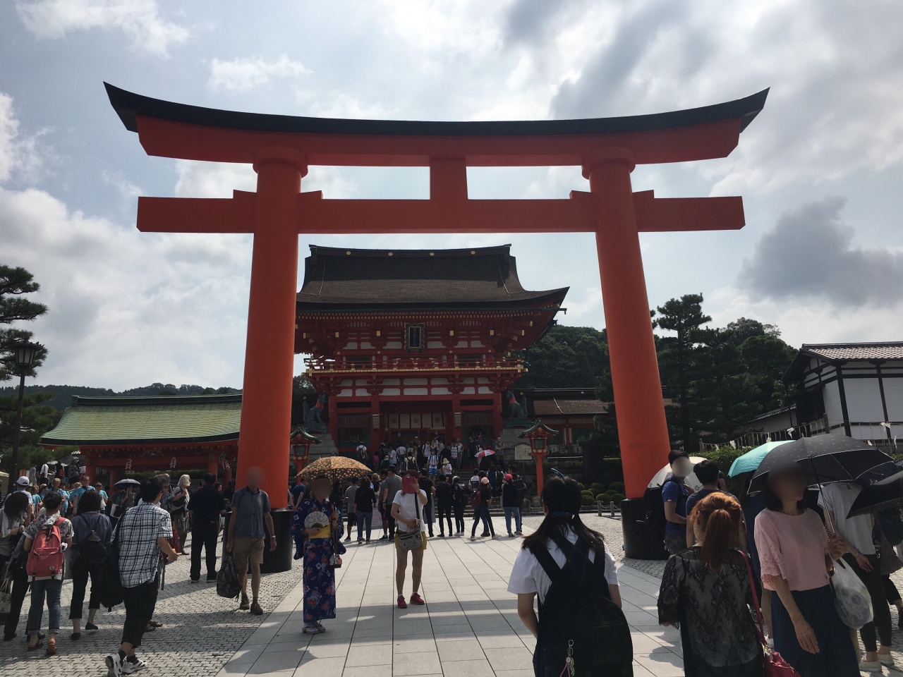 稲荷駅から参道へ行くと目の前に大きな鳥居が見えてきます。その鳥居をくぐった先にあるのが楼門です。神社の楼門の規模としては最も大きいそうです。伏見稲荷大社といえば千本鳥居が有名ですが、楼門も立派で見応えがありました。外国人観光客が非常に多かったです。