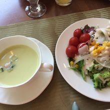 こちらにスープがついてサラダ デザート ソフトドリンクはビュッフェスタイル。