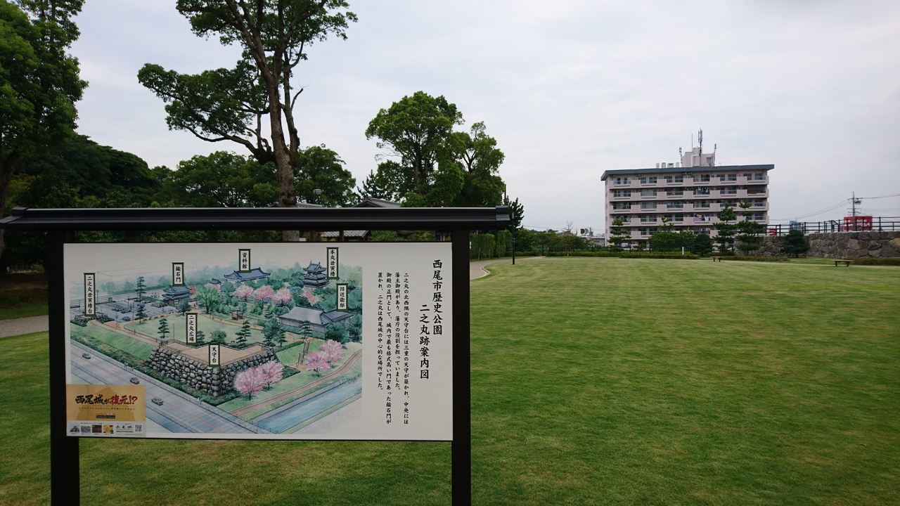 西尾城は明治の廃城令で現存していた建物も取り壊されてしまって現存するものはないのですが、徐々に復元されてかなり美しい公園になりました。二の丸の芝生エリアは見事な美しさに変身し、来るたびに感動しています。